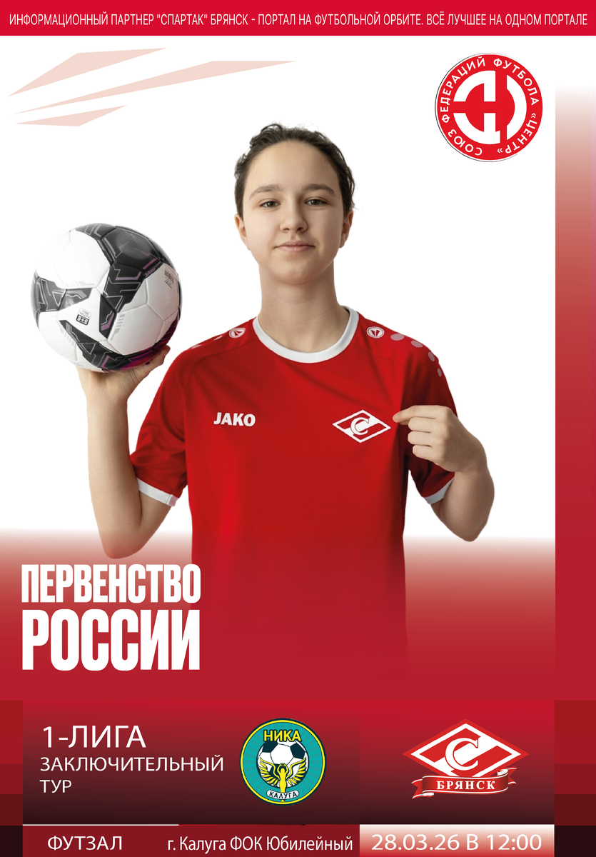 На данный момент СК "Спартак" занимает вторую строчку турнирной таблицы Первой лиги. В активе красно-белых 9 матчей и 20 очков. На первом месте "Факел" (Воронеж) после 10 игр 22 очка. В случае победы наши девочки станут чемпионками первой лиги. Этот матч мы планируем показать в прямом эфире. Болеем за "Спартак" и ждем только победы! 28.03.2026, суббота, ФОК «Юбилейный», г. Калуга.