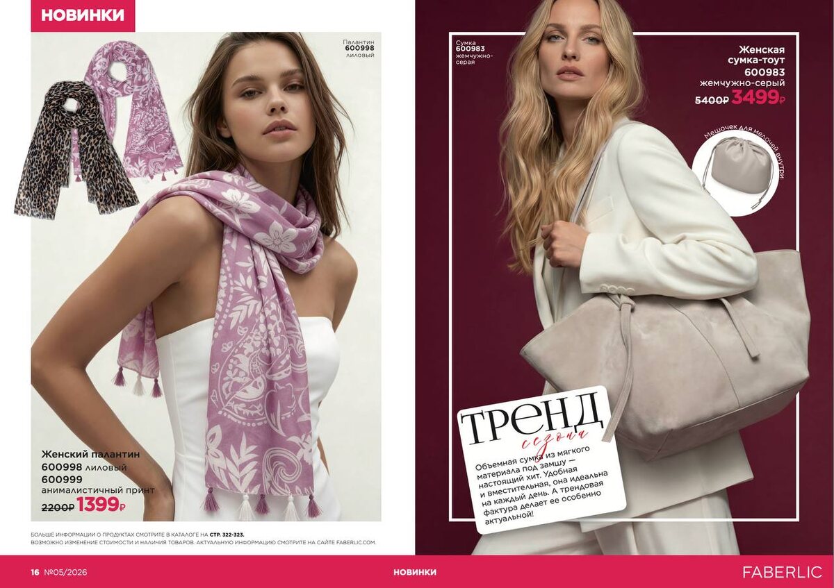 • Палантины (арт. 600998, 600999) — нежный лиловый или дерзкий анималистичный принт. Мягко согреют весенним вечером. (💰 1399₽)