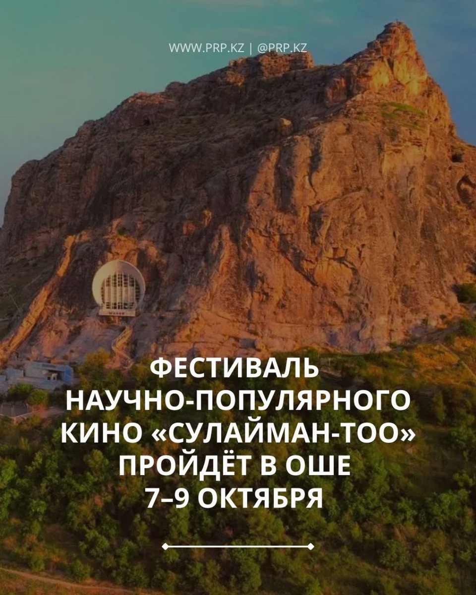 «Сулайман-Тоо». Площадкой проведения станет Ошский государственный университет. Организаторами выступают Департамент кинематографии при Министерстве культуры, информации, спорта и молодежной политики Кыргызской Республики, мэрия города Ош и Институт педагогики, искусства и журналистики ОшГУ (направление «Киноакадемия»). ‼️ Приём заявок на участие откроется 2 июня и продлится до 15 августа 2026 года. Уже 16 сентября будут объявлены фильмы, вошедшие в конкурсную программу. Сам фестиваль пройдет с 7 по 9 октября на базе Ошского государственного университета. В фестивале участвуют фильмы научно-популярного и просветительского формата, ориентированные на раскрытие исторических, культурных и природных тем. PRP.KZ