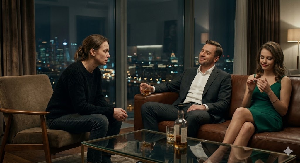 Вадим откинулся на спинку роскошного кожаного дивана, лениво покачивая в руке бокал с виски. На его лице играла снисходительная улыбка человека, у которого жизнь удалась. В огромном панорамном окне за его спиной переливалась огнями вечерняя Москва, словно подтверждая его статус хозяина жизни.
