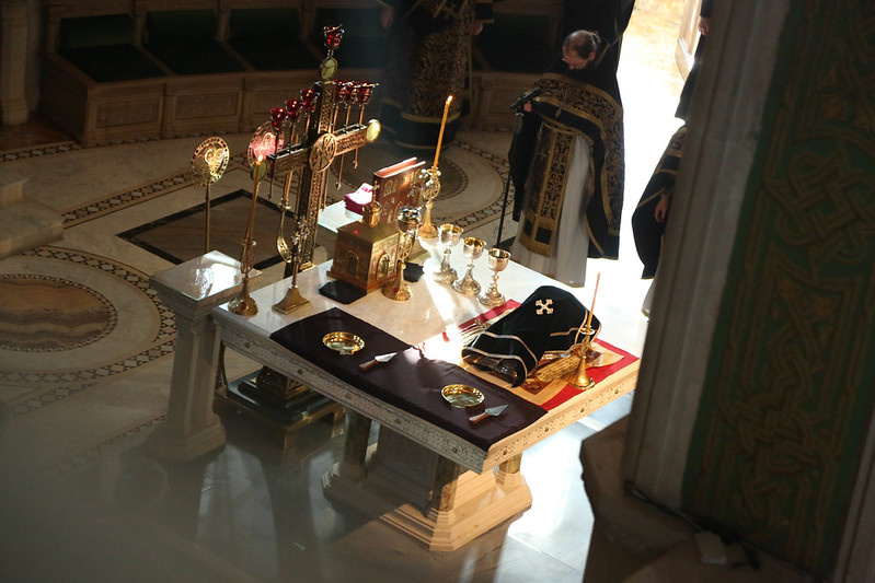 когда участвуем в Святых таинствах и молимся о всех людях.
