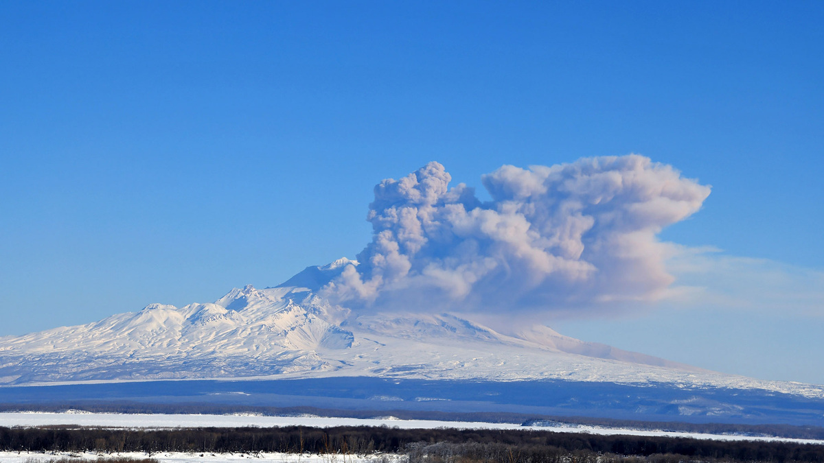 МЧС: вулкан Шивелуч на Камчатке выбросил столп пепла на высоту до 11 400 метров