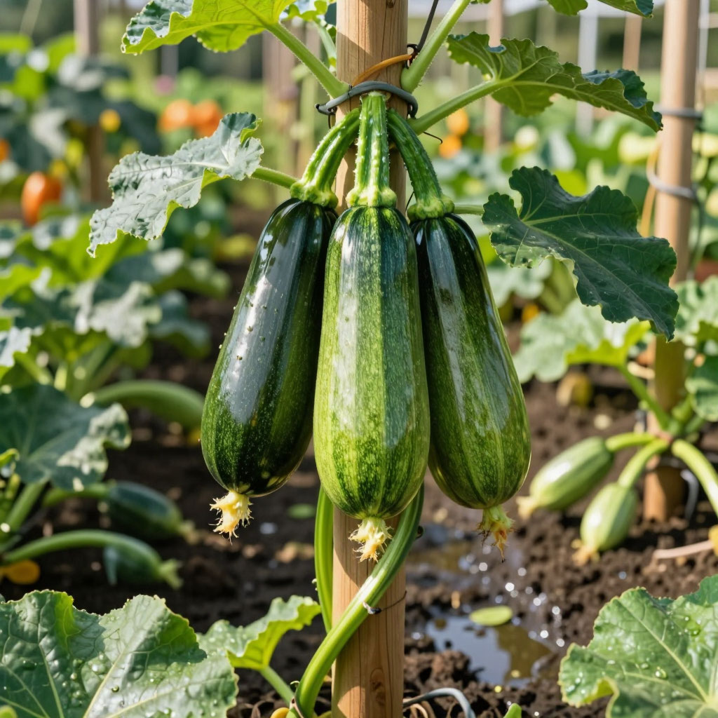 Скворушка. Раннеспелый сорт цуккини, который славится своей живучестью. Он одинаково хорошо растет и в открытом грунте, и под временными укрытиями. Скворушка не боится ветров, его куст низкорослый и стабильный. Плоды гладкие, темно-зеленые. Главная особенность этого сорта — отличная завязываемость плодов при недостатке питания. Если вы не удобряли грядку органикой с осени, Скворушка все равно даст достойный урожай, используя минимальные ресурсы почвы.