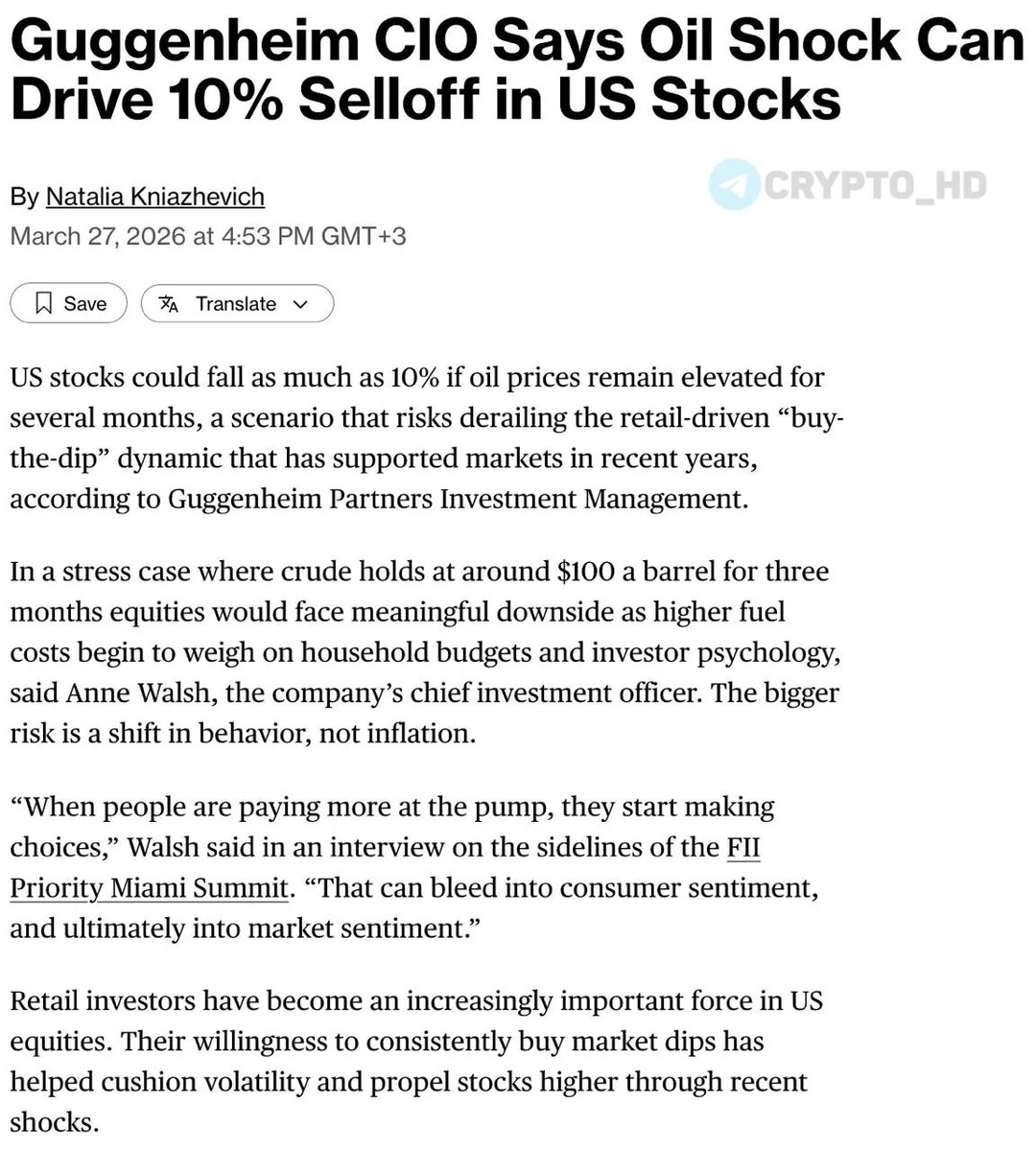 Аналитики инвестиционной группы Guggenheim прогнозируют 10%-ный обвал рынка США при сохранении цен на нефть на уровне $100 за баррель. Узнайте, как это отразится на криптовалютном рынке и стратегиях инвесторов в марте 2026 года. Среди ключевых решений и фактов: Эксперты Guggenheim предупреждают, что сохранение цен на нефть на уровне $100 за баррель в течение трёх месяцев может обрушить фондовый рынок США на 10%; Рост цен на топливо давит на… Читать полностью
