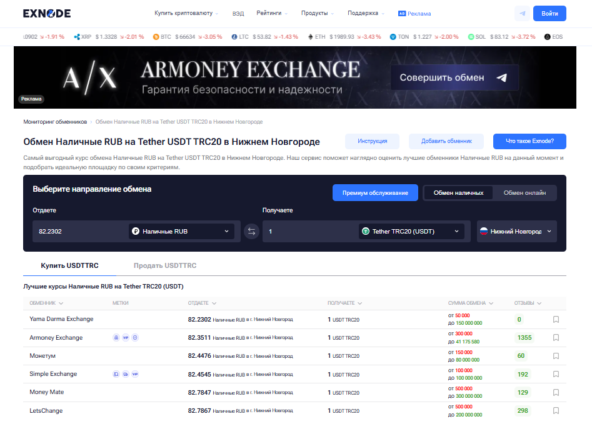Мониторинг криптообменников Нижнего Новгорода на Exnode