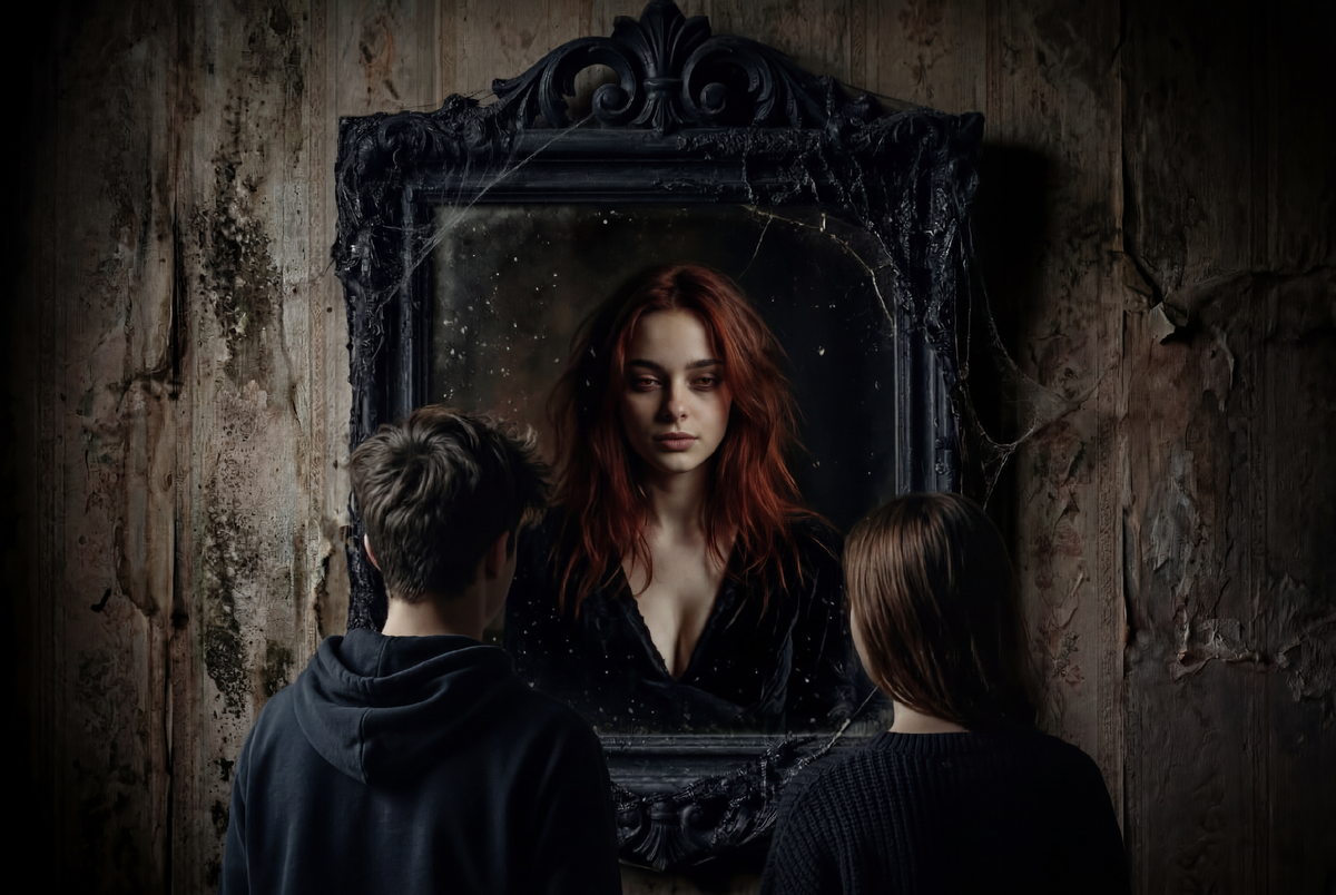 Парень и две девушки не стали тушить костёр. Они просто встали и ушли, оставив там юного экстремала. Хоть это было и лето, но в квартире было холодно. Спать ему, конечно же, не хотелось, и он принялся разглядывать единственную вещь, оставшуюся в этой квартире, которая могла вызвать хоть какой-то интерес - старое зеркало, висящее на стене в коридоре. Под светом костра оно не казалось таким старым и заброшенным. При близком рассмотрении было видно, что кто-то совсем недавно протирал на нём пыль. Внезапно парень поймал себя на мысли, что оно выглядит как новое! Будто оно только привезено из какого-то элитного мебельного магазина, или даже тщательно отреставрированное зеркало Викторианской эпохи. Даже костёр в его отражении выглядел идеальным. Оно как-будто впитывало его тепло и распространяло его по квартире. Ему уже не было холодно. Он онемевший стоял перед зеркалом и разглядывал в его. Его отражение в зеркале казалось ему эталоном красоты. Лучшим, что он когда либо видел.
