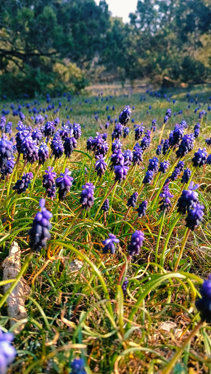 СКАЗКА! В Крыму сейчас сказочная пора! Только отцвели крокусы на полях у черного моря,как на их место пришли Мускари в сине-фиолетовом цвете и усыпали землю.
