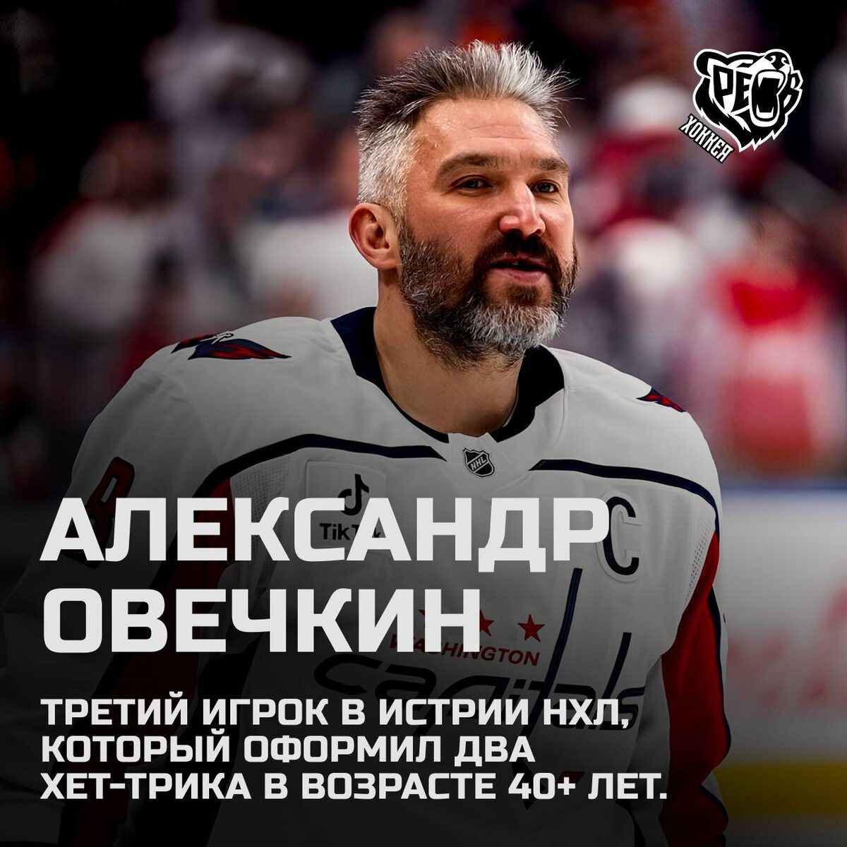 🦅 Овечкин в очередной раз вошёл в историю НХЛ! Сегодня ночью в матче против «Юты Маммот» 40‑летний форвард оформил хет‑трик и стал третьим игроком в истории лиги, кому удалось сделать два хет‑трика за один сезон в возрасте 40 лет и старше. До Овечкина это достижение покорялось лишь двум легендам: Горди Хоу и Джонни Бьюсику. Первый хет‑трик текущего сезона Александр оформил ещё 20 ноября в Монреале. 🐻 Слышишь? ЭТО РЁВ ХОККЕЯ