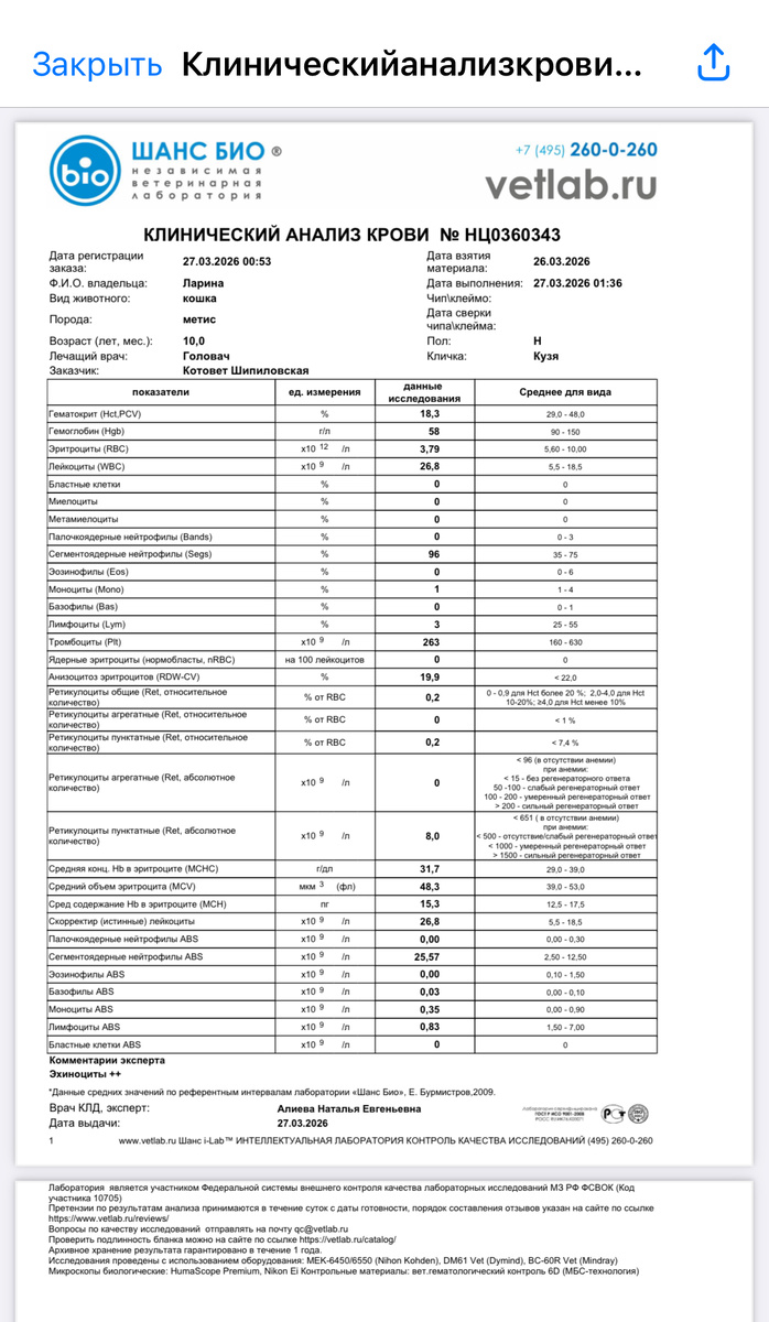 Получили анализы крови Кузи, низкие показатели гемоглобина и гематокрита. По узи есть немного жидкости в брюшной полости, нефрит, изменения печени и поджелудочной. Нужно дождаться инфекций, и собирать картину воедино