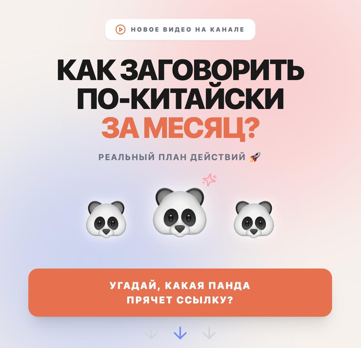 ? 🐼🇨🇳 Мы выпустили новое видео, где без волшебных таблеток и пустых обещаний разобрали пошаговый план: как за 30 дней выйти из состояния «ничего не понимаю» в первые уверенные фразы на китайском. В видео тебя ждет: ✅ Золотые правила запоминания тонов. ✅ Первые фразы и шаблоны. ✅ Как побороть страх говорить. Ниже три панды, и у каждой свой секрет. Видео прячется только под одной из них, но под остальными — другие, не менее крутые приколы. Выбирай свою панду (или тыкай во все три по очереди, чтобы собрать полный набор): 🐼 1 | 🐼 2 | 🐼 3 🌸 Подписаться на канал | Дать нам буст | Канал в MAX