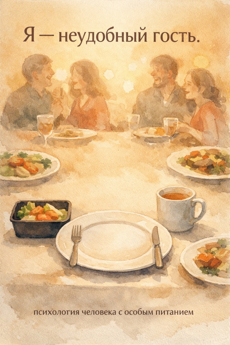 Я тот самый «неудобный гость», который приходит со своим контейнером, задаёт вопросы о составе и пьёт воду из бутылочки, которую принёс с собой. Но за эти годы я не только научилась выживать с ограничениями, но и, как психолог, разобралась: откуда берётся это чувство «неудобности» и как перестать быть заложником чужой ра