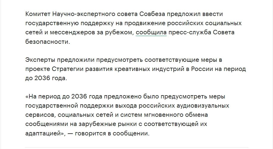 Совет Безопасности Российской Федерации предложил помогать продвигать российские мессенджеры за границей