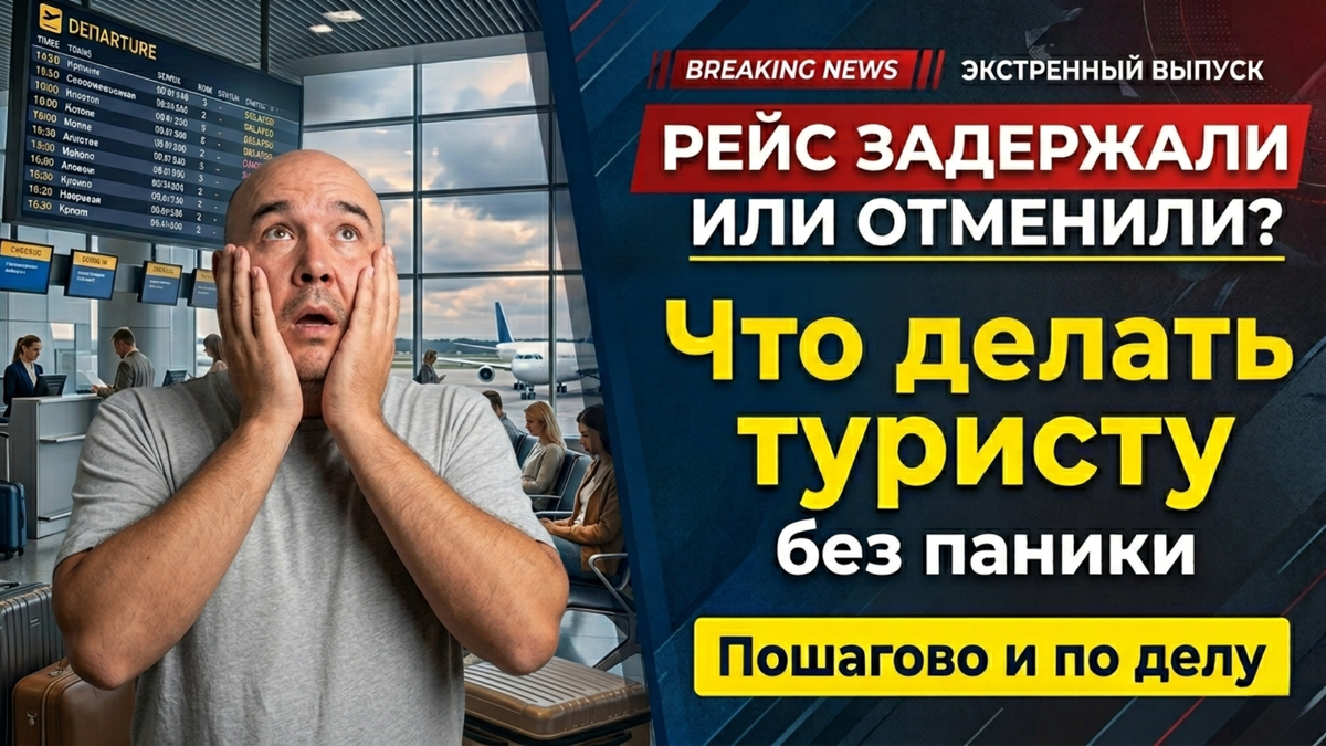 Задержка или отмена рейса — одна из самых нервных ситуаций в отпуске. В этот момент люди обычно делают две вещи: либо впадают в панику, либо начинают метаться между стойками, чатами и звонками. На самом деле здесь важнее не суетиться, а понимать простой порядок действий. Разбираем, что делать туристу, если рейс задержали или отменили, на что вы имеете право и как не потерять деньги, время и остатки душевного равновесия.