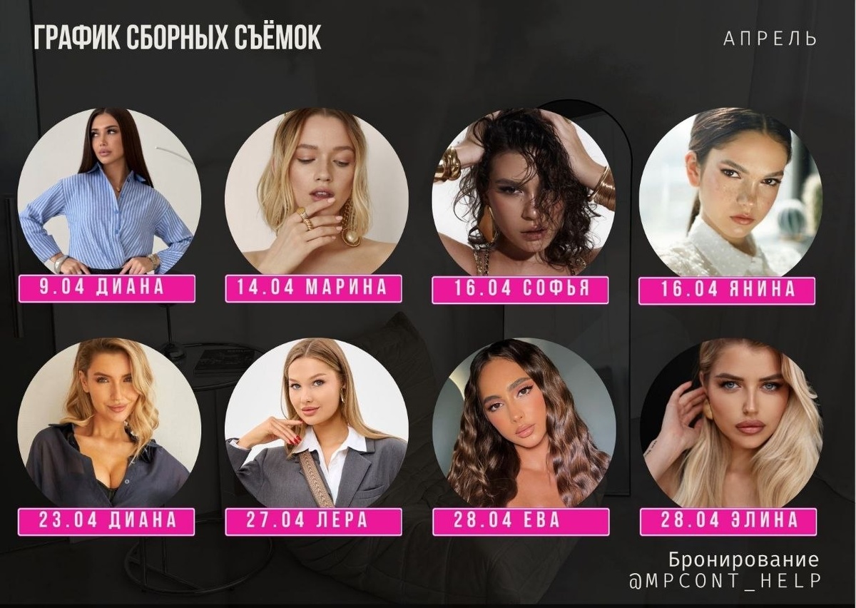 Выберите понравившуюся модель и запишитесь к нам на съёмку через менеджера : @mpcont_help