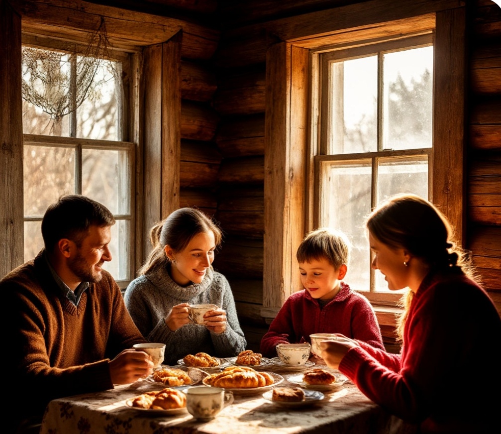 Аделина и Диана разбирали привезённые продукты, и готовили накрывали стол к чаю. Гриша сидел с любимой мамочкой и тётей, и хватал со стола что-то вкусненькое. Слушал их разговоры, сам что-то говорил, и просто радовался, что у мамы оказывается есть такая милая сестра - тётя Диана...