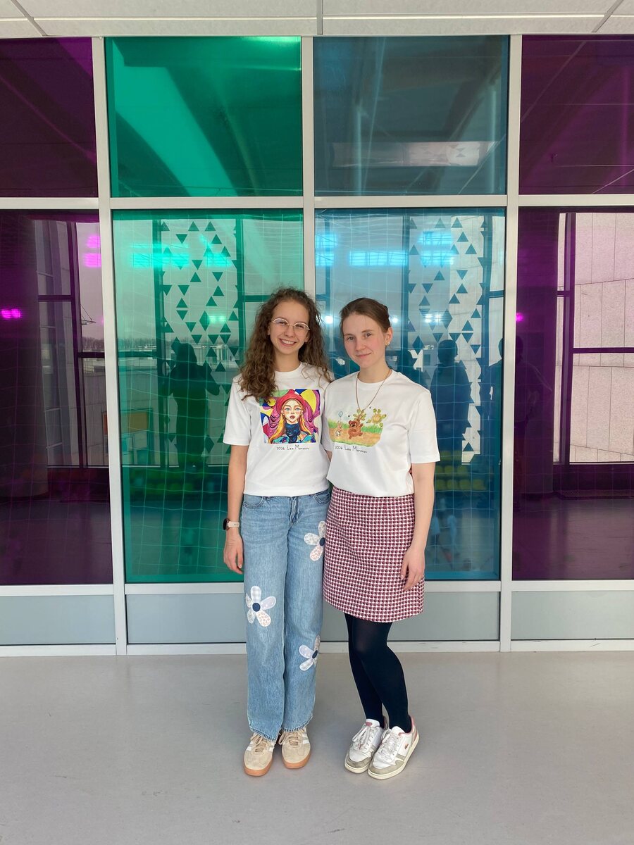 😍 Лея Морозова - моя ученица 6 класса - очень красиво рисует (и не только рисует, но и поет, и танцует) 🙃 Вместе с родителями она решила создать футболки со своими рисунками. Мне посчастливилось получить одну такую в подарок 🎁 Посмотрите на эту красоту! Я в невероятном восторге! 🤩 Да и не только я. Многие дети и учителя оценили эту футболку, а когда узнали, что рисунки создала Лея, а футболку - ее родители, были очень удивлены 😨 А на второй фотографии просто мы, девочки-припевочки 🐱 P.S. Когда-то Лея увидела у меня маникюр с Винни-Пухом и решила, что именно он с пятачком должен быть у меня на футболке. Я считаю, попала точно в цель 🎯