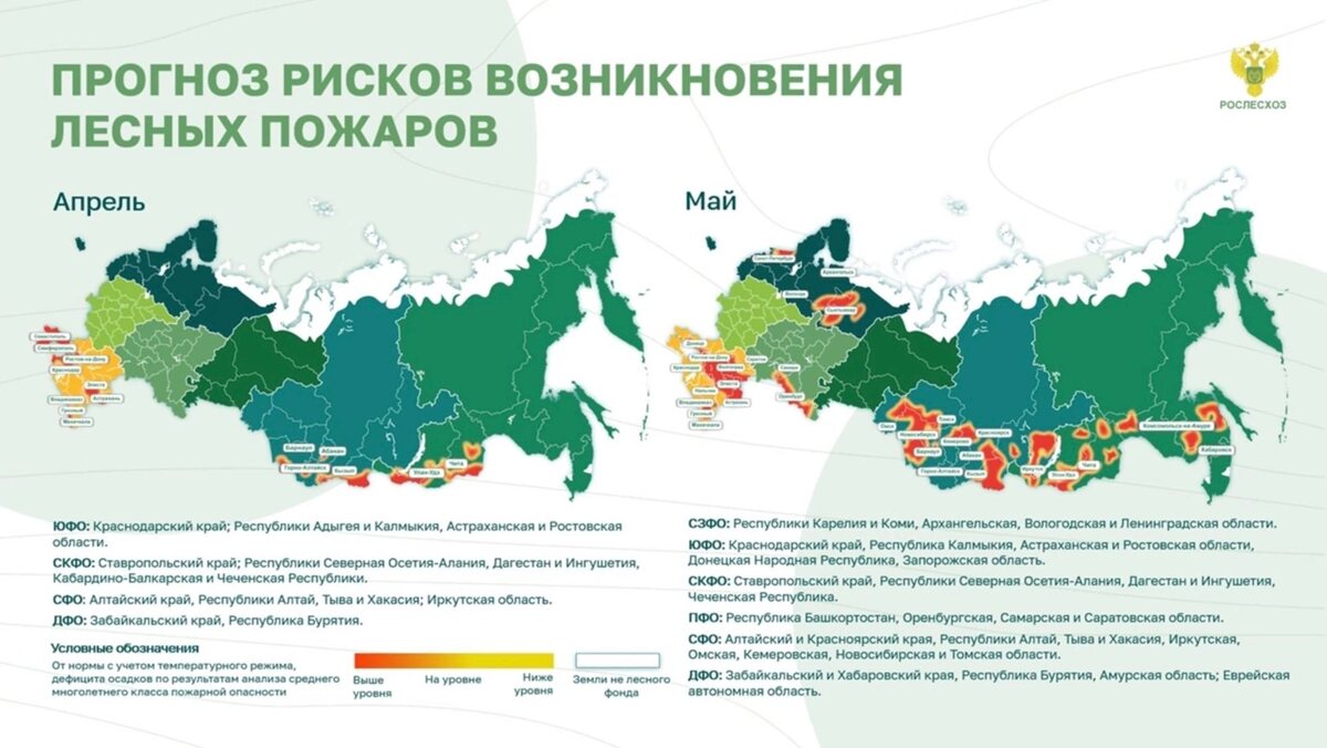Иван Советников: в апреле в южных, некоторых дальневосточных и сибирских регионах страны ожидаются высокие риски возникновения лесных