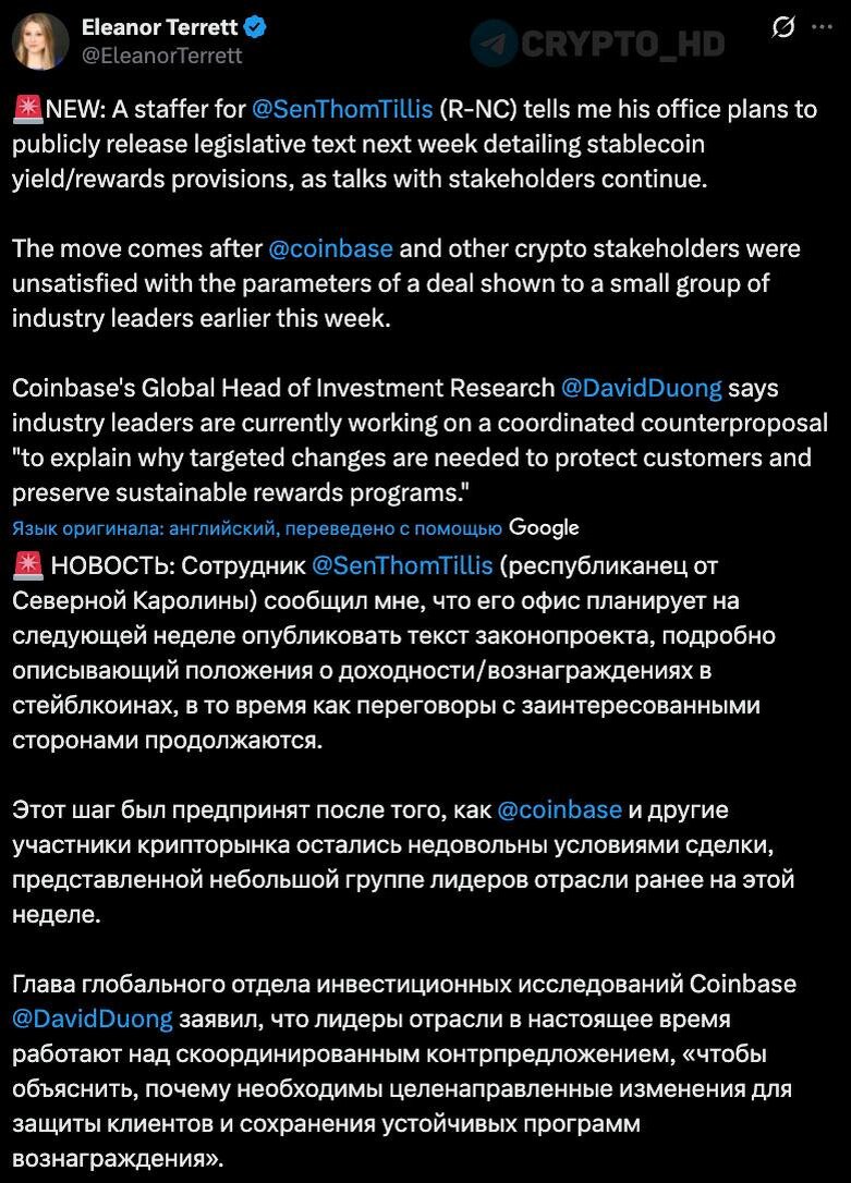 πΊπΈ Eleanor Terrett: ΠΠ° ΡΠ»Π΅Π΄ΡΡΡΠ΅ΠΉ Π½Π΅Π΄Π΅Π»Π΅ ΠΎΠΏΡΠ±Π»ΠΈΠΊΡΡΡ ΠΎΠ±Π½ΠΎΠ²Π»Π΅Π½Π½ΡΠΉ ΡΠ΅ΠΊΡΡ Π·Π°ΠΊΠΎΠ½ΠΎΠΏΡΠΎΠ΅ΠΊΡΠ° ΠΎ ΡΡΡΡΠΊΡΡΡΠ΅ ΠΊΡΠΈΠΏΡΠΎΡΡΠ½ΠΊΠ°, Π²ΠΊΠ»ΡΡΠ°ΡΡΠΈΠΉ ΠΏΠΎΠ»ΠΎΠΆΠ΅Π½ΠΈΡ ΠΎ