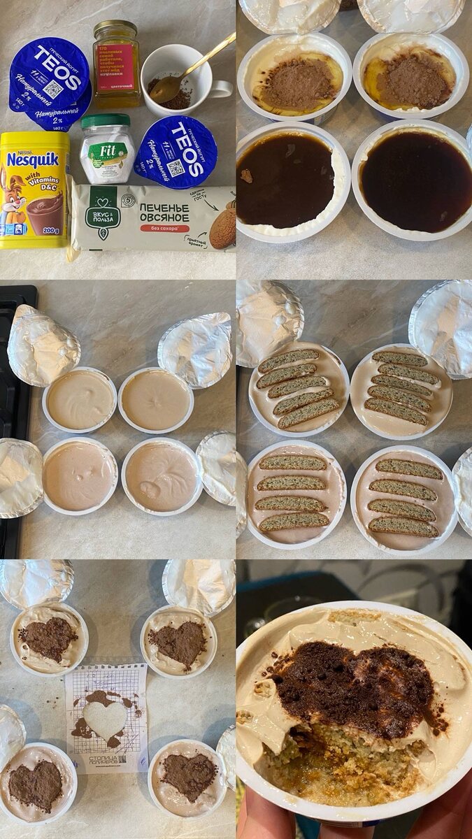 Постами ранее был первый опыт десерта из греческого йогурта. Теперяче, захотелось сделать его более похожим на тирамису, придав кофейного вкуса и использовав печенье без сахара. Приготовил в двух вариантах: с кофе (для взрослых) и с медом (для детей) С кофе Чайную ложку растворимого кофе залить чуть-по-чуть кипятком (100мл), дать остыть и влить в стаканчик с йогуртом (100мл на два стаканчика у меня вышло разлить), Ложечку какао чисто по приколу добавить, Микро ложечку сахзама добавить для сладости (количество на ваше усмотрение), Перемешать до красивой однородной массы, Вставить печеньки в массу столько, сколько хотите по плотности, Намазюкать массой поверх печенек, чтобы было симпатичнее. Еще я решил сделать красивые сердечки из какао сверху, но вышло что вышло😅 Закрыть это дело крышкой или спрятать в пакет как это сделал я. С медом Все тоже самое, только вместо кофе, по ложке меда. А дальше идет тренировка. Тренировка выносливости и силы воли. Чем дольше не трогаешь - тем лучше