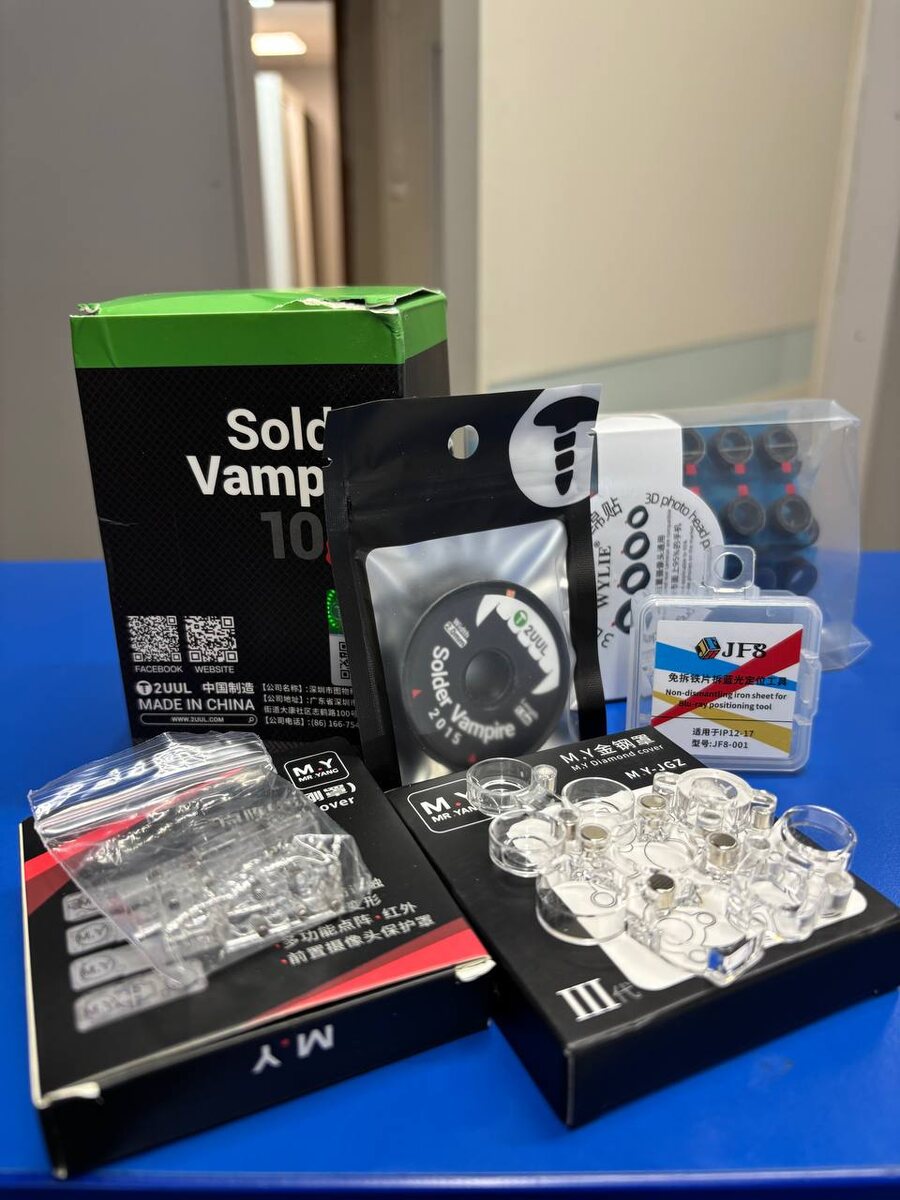 : Вот список интересных штучек из посылки : 2 фото : защитные накладки для камеры 📷 - 3 фото : защитные , пыленепроницаемые накладки для модуля True Depth 4 фото : Оплетка для снятия припоя - отличная, однозначно рекомендуем к приобретению 5 фото : Защита от пыли камер - для снятия и центровки линз 6 фото : Губчатые защитные наклейки для камеры телефона