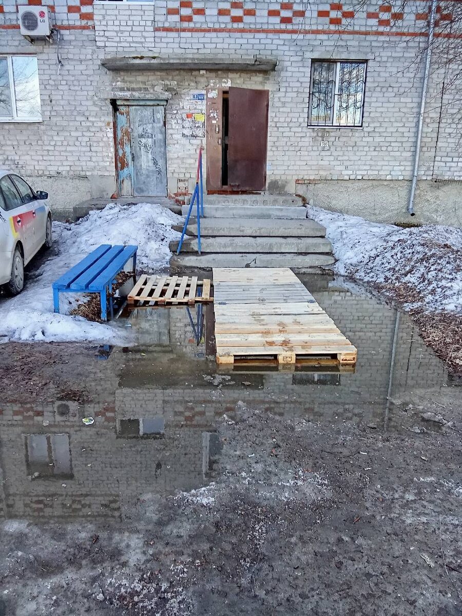 ?🥴 Перед вами Мира, 10 Квест: «Выйди из подъезда» На фото не стройка. Не временное решение от ЖКХ. Это люди сами выживают, как могут. Вопрос простой: Как выходить из подъезда? — С детьми? — С колясками? — Пожилым?