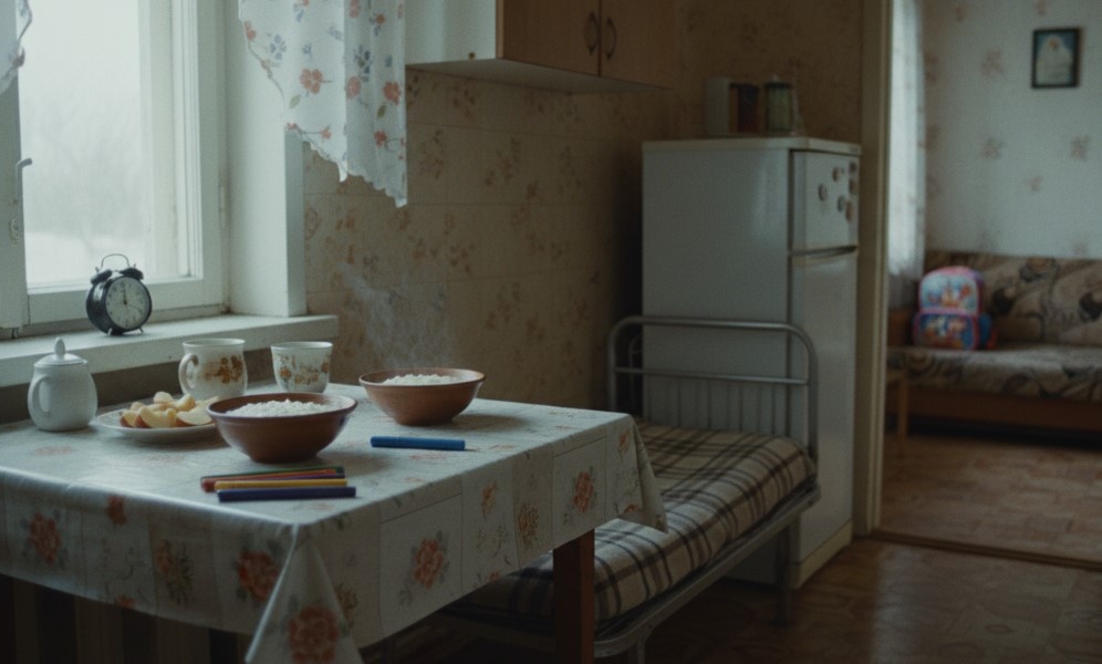 Утром она встала в шесть. Сварила кашу — овсяную, на молоке, с сахаром. Порезала яблоко — четыре дольки, по две каждому. Поставила чашки. Нашла в шкафу старые Димины фломастеры, которые хранила с его школы — зачем хранила, сама не знала, но вот пригодились.