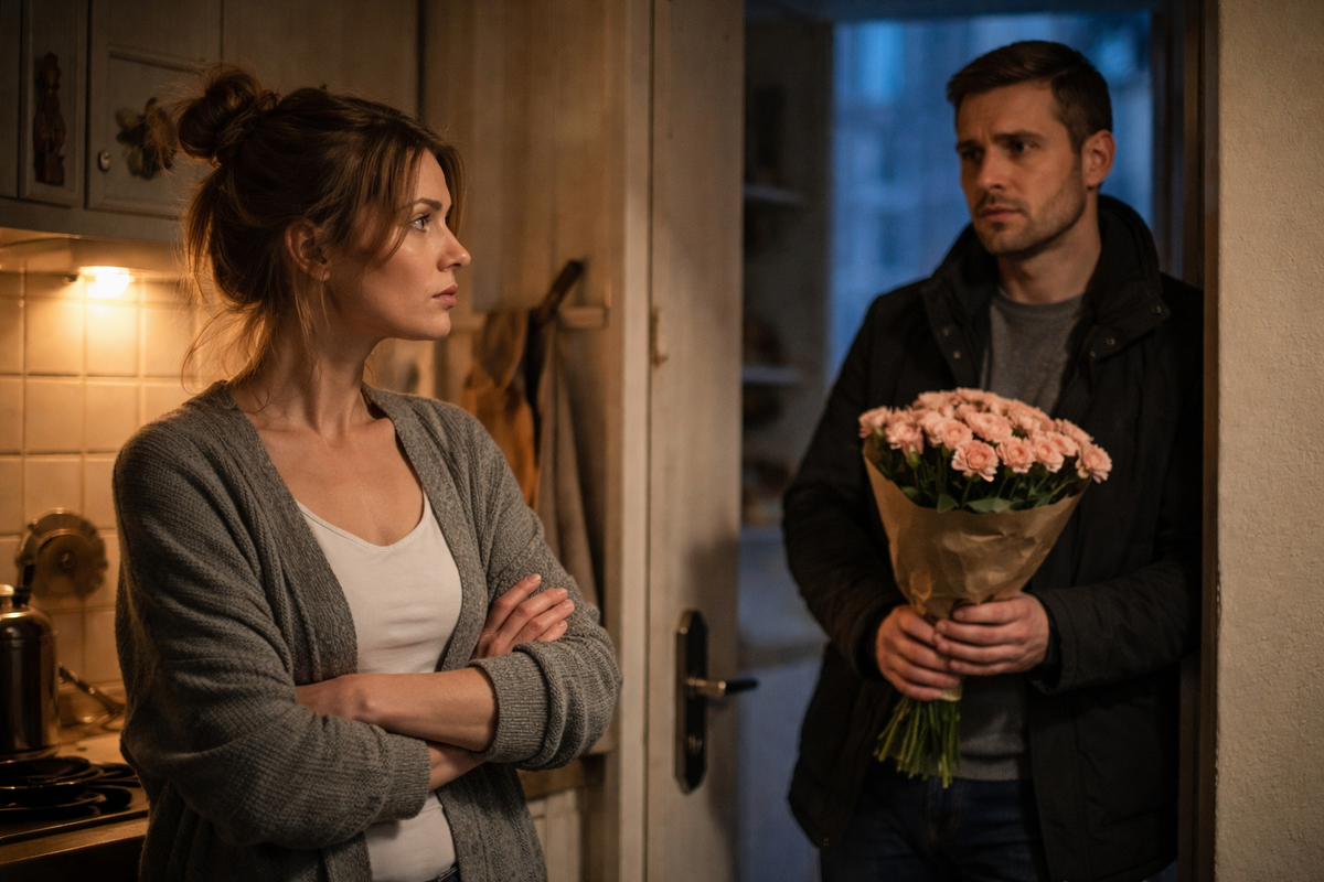 Когда я открыла дверь, он стоял на лестничной площадке с букетом, который уже немного завял по краям. Нежно-розовые гвоздики. Я даже усмехнулась про себя: надо же, спустя четыре года он все еще покупал мне цветы так, будто шел не ко мне, а к женщине, которую когда-то придумал.