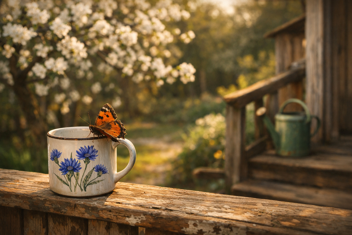 А в мае, когда яблоня зацвела снова, я приехала. Одна. Открыла дом, поставила чайник, вынесла на крыльцо мамину кружку. Синие васильки, скол на ручке. Пила чай и смотрела.