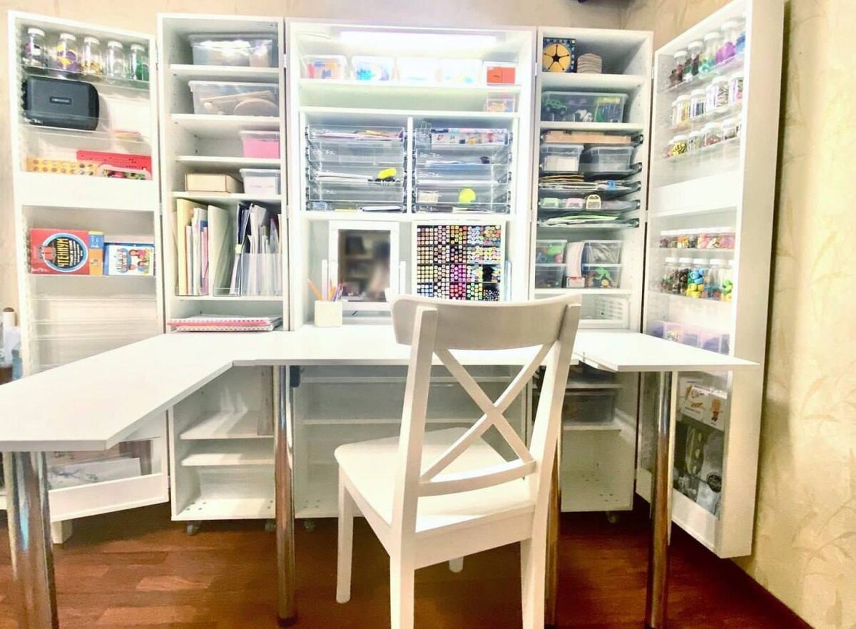 😃 Кто сказал, что шкаф‑трансформер только для рукоделия? Он может стать настоящим кабинетом логопеда!) Внутри с удобством разместятся развивающие материалы,тренажёры, игрушки для занятий и зеркало — чтобы ребёнок мог следить за артикуляцией✨ 1922М+СТФУ. На фото модель Medium с дополнительным столом с сохранением навесной секции. 🔸от 88.890₽ •Гео: Москва (доставка 8-11 т.р.) •Материал: W980 ST2 Белый Платиновый •Фасад: МДФ, Фасадная пленка Белое дерево (1), Фрезеровка 003 🔸Дополнительно добавлены: •Модуль стол вниз С/М (W908 ST2) •Модуль для маркеров (W980 ST2) •Модуль из ДСП в центральную секцию С/М для установки выкатных полок (W980 ST2) •Полка узкая с бортом 40мм С/М - 10 шт •Полка узкая из оргстекла С/М кисточница 20/30 мм (СМКист) •Набор модулей "Выкат 2/2" С/М •Набор модулей "Выкат 5/5" С/М •Набор разделителей 10/10 С/М 50 мм •Набор разделителей 10/10 С/М 25 мм •Комплект разделителей в выкатную полку 50мм (4 шт) С/М - 3 шт •Комплект разделителей в выкатную полку 25мм (4 шт