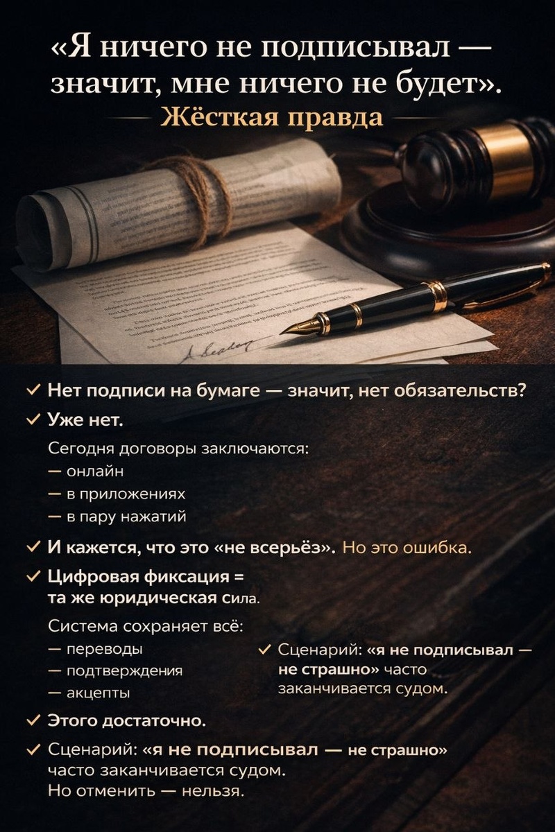 🚫 Сценарий «я не подписывал — значит, не страшно»