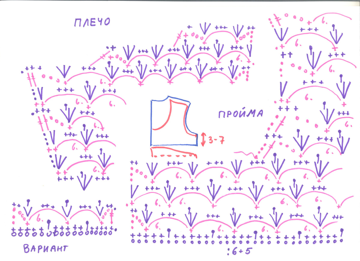 На схемах подробно указаны прибавки и убавки. Готовые детали отпарьте и соедините по швам. Как отпарить, смотрите на моём канале в плейлисте "Учебный". Обвяжите горловину, низ рукава и низ платья столбиками без накида с "пико" в послед