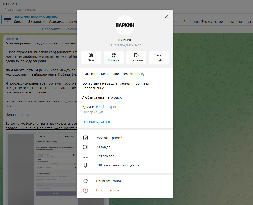 Короче, ситуация максимально типичная. Появляется новый канал, «эксперт по ставкам», куча уверенных слов, статистика, отзывы — всё как обычно. В этот раз это Дмитрий Паркин с каналом про теннис. На первый взгляд вроде всё прилично. Но если немного подумать и покопаться — начинает сыпаться. Если не хотите тратить деньги на такие «эксперименты», лучше сразу посмотреть нормальные альтернативы. Канал вроде как появился в 2024, но активно начал работать только в 2025. По легенде: • автор шарит в теннисе
