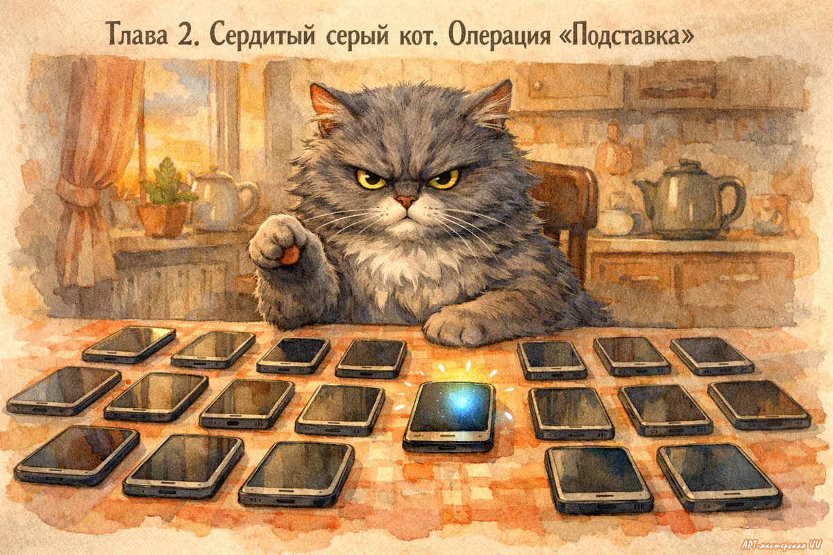 Она оказалась коварнее, чем выглядела. Днём — исчезала. Пряталась в столе, как будто знала. Ночью — возвращалась и снова принимала удары пальцев, как ни в чём не бывало. Кот это отметил. — Хитрая, — подумал он, медленно прищурившись. — Но не умнее меня. Нужно было действовать иначе. Не в лоб.