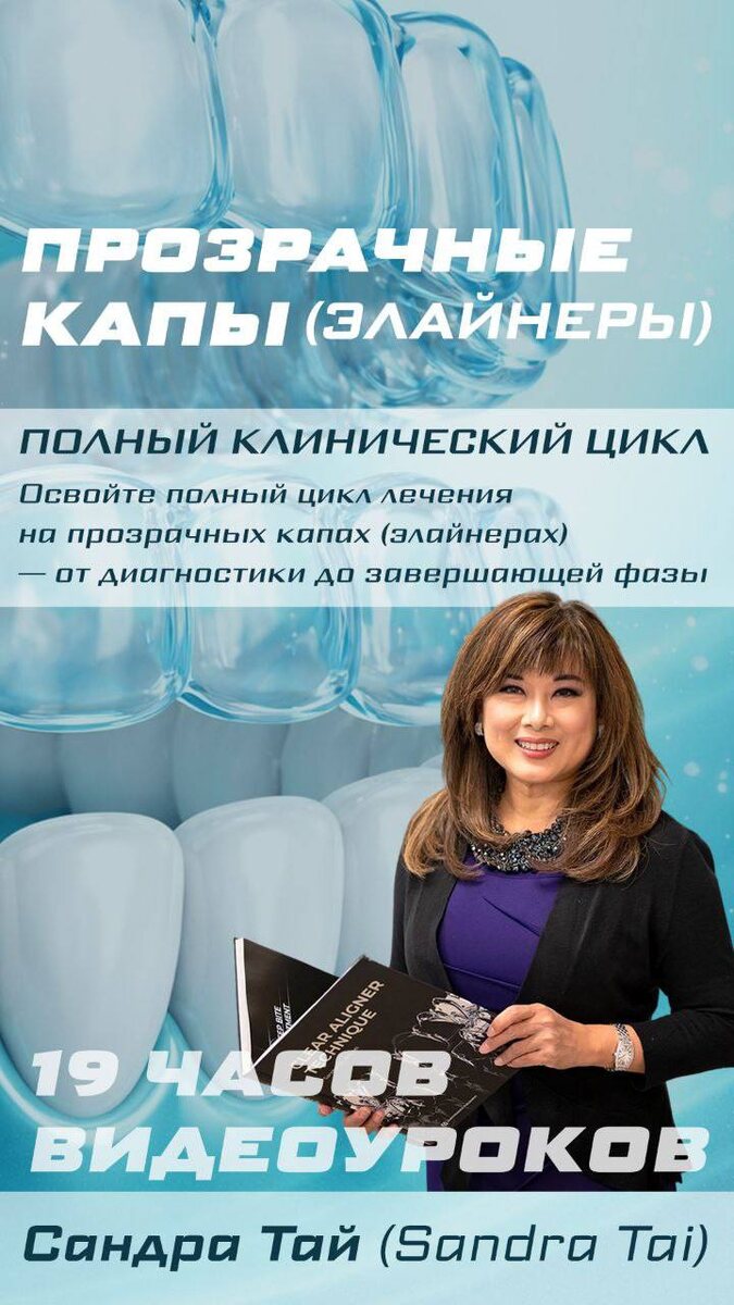 📈 Курс для врачей, которые хотят уверенно работать с элайнерами и получать прогнозируемые результаты ✅ Сандра Тай | 19 часов 📹🕘 ——————————————— - диагностику и планирование лечения на элайнерах - показания и ограничения метода - разбор клинических кейсов частые ошибки и как их избежать - контроль лечения и коммуникацию с пациентом К каждому уроку идет ПДФ файл с конспектом лекции ——————————————— Подробная программа курсов по ссылкам 📎 https://stom-e.com/aligners_sandratai?utm_a=Tg С наилучшими пожеланиями и надеждой на сотрудничество, СТОМ-И 📸