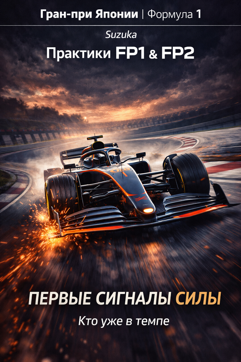 В пятницу прошли первые две свободные практики Гран-При Японии 2026 на трассе Сузука. Вкратце пройдемся по основным моментам. В начале свободной практики большая часть пилотов выбрала шины Hard. На шинах Medium начали практику Пиасри, Хаджар, Ферстаппен, Сайнс, Гасли, Хюлькенберг и Перес. Кими Антонели появился в падоке с перевязанной рукой. Пилот получил травму в аварии в третьей свободной практики Гран-При Китая. Антонели заверил, что данная травма не мешает ему в гонке. Как мы знаем, на трассе Шанхая, Кими смог занять первое место, хотя травма была совсем свежей. Не все гладко у команды Макларен. Ландо Норрис смог начать практику спустя 25 минут после начала. Для Алекса Албона первая практика была неудачной. За 24 минуты до окончания практики, в 9 повороте, он вылетел на гравий и слегка зацепил стену. А за 5 минут до окончания, в 16 повороте, столкнулся с Чеко Пересом, после чего болид Албона развернуло. Было серьезно повреждено переднее антикрыло. Завершили пилоты свободную практ
