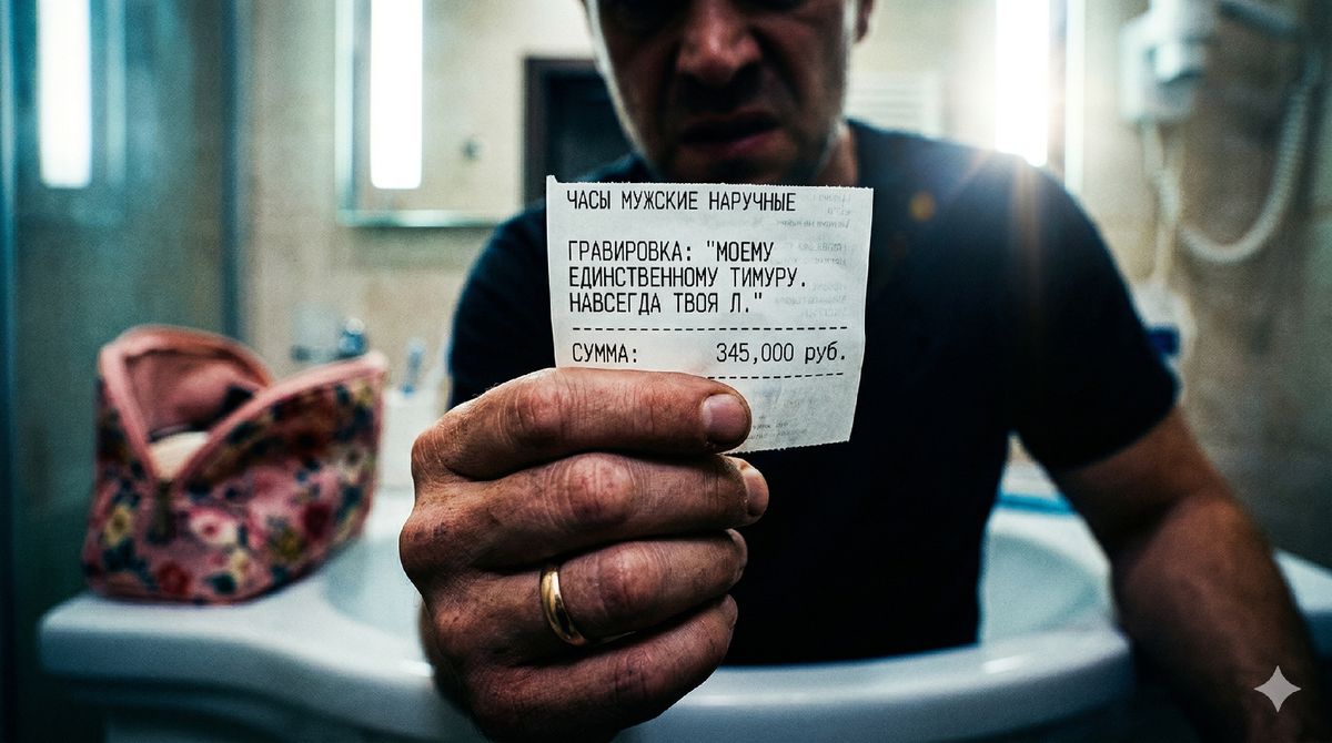 Знаете, как бывает: живешь свою обычную, ничем не примечательную, но такую уютную и понятную жизнь, строишь планы на выходные, думаешь, куда поехать в отпуск следующим летом, а потом одна маленькая, совершенно незначительная деталь рушит все это до основания. Словно кто-то вытащил нижний кубик из башни дженга, и вся твоя десятилетняя семейная история с грохотом рассыпается по полу. Я никогда не думал, что стану героем подобной драмы. Мы с Леной всегда казались мне той самой скучной, но счастливой парой, которая состарится вместе на даче, выращивая гортензии и воспитывая внуков. Десять лет брака, восьмилетняя дочка Дашка, ипотека, которую мы выплатили на три года раньше срока, общие друзья, общие привычки, общая жизнь. И вот, во вторник утром Лена собиралась в командировку. Это была обычная поездка в Санкт-Петербург на отраслевую конференцию, ничего выдающегося. Она суетилась на кухне, допивая остывший кофе, пока я гладил ей рубашку. В квартире пахло ее любимыми духами с нотками ванили и свежими тостами. «Леночка, ты паспорт не забыла?» — крикнул я из комнаты, аккуратно складывая выглаженную вещь. «Положила в сумочку еще вчера! — отозвалась она, забегая в комнату и на ходу застегивая браслет часов. — Все, я побежала, такси уже ждет. Дашку из школы забери вовремя, у нее сегодня танцы в пять, не забудь!» Она чмокнула меня в щеку — привычно, быстро, скользнув взглядом куда-то мимо моих глаз — и хлопнула входной дверью. Я остался один в звенящей утренней тишине. Обычное дело, командировки у нее случались пару раз в год, и я даже немного любил эти дни: можно было безнаказанно есть пиццу на ночь, смотреть дурацкие боевики и играть с Дашкой в приставку до позднего вечера. Я налил себе вторую чашку кофе и пошел в ванную, чтобы забросить полотенца в стиралку. На краю раковины, наполовину свесившись в раковину, лежала ее запасная косметичка. Лена вечно в спешке перекладывала нужные тюбики из одной в другую, а эту, видимо, забыла убрать в шкафчик. Я машинально взял ее, чтобы положить на полку, и заметил, что молния разошлась, а изнутри торчит какой-то скомканный белый прямоугольник. Обычный кассовый чек. Я бы никогда не обратил на него внимания, если бы не крупный логотип известного ювелирного салона, который мы с Леной как-то проходили в торговом центре, и она еще тогда вздохнула, что цены там просто космические. Мой мозг, еще не проснувшийся до конца, лениво подумал: «Наверное, купила себе какие-нибудь сережки, решила порадовать. Почему не сказала?» Я аккуратно вытянул чек двумя пальцами, просто из праздного любопытства, чтобы узнать, насколько сильно пострадал наш семейный бюджет. И тут время остановилось. Буквы и цифры на термобумаге поплыли перед глазами, отказываясь складываться в осмысленный текст, хотя все было предельно ясно. Наименование товара: «Часы мужские наручные, механические, хронограф». Сумма: такая, что мне пришлось бы откладывать свою зарплату целиком месяца три. Но самое страшное было ниже. В графе «дополнительные услуги» значилось: «Индивидуальная гравировка: "Моему единственному Тимуру. Навсегда твоя Л."». Тимуру. Моему единственному. Навсегда твоя. Я перечитал эти строчки раз пять, не меньше. Сердце сначала замерло, а потом начало колотиться где-то в горле, отдаваясь глухой болью в висках. Меня зовут Сергей. В нашем окружении нет ни одн