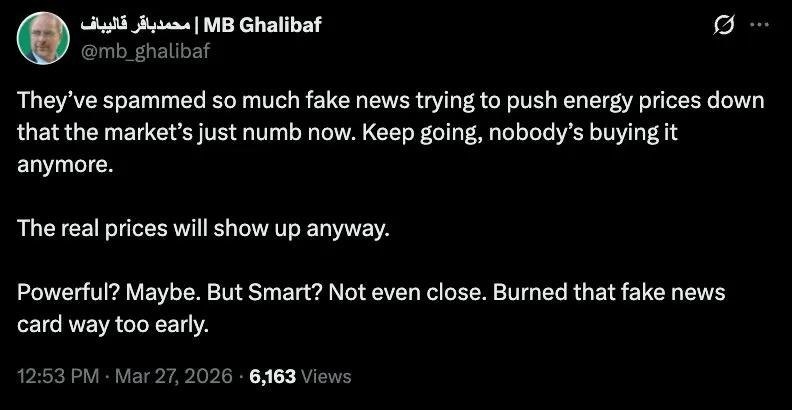 ❗️🔊Спикер иранского парламента Галибаф о блефе Трампа о мирных переговорах и предстоящих сделках