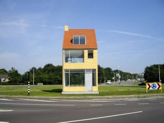 Нидерланды широко известны своими необычными скульптурами, монументами и инсталляциями, у этой страны действительно особенный взгляд на искусство и архитектурные решения. Они также славятся на весь мир своими инженерными разработками, в которых им, пожалуй, нет равных, как нет равных и в умении удивлять смелыми идеями и их воплощением в жизнь. Сегодня я хочу рассказать о необычном домике, который открыла для себя совсем недавно. Честно говоря, увиденное вызвало у меня довольно неоднозначное впечатление, которым мне не терпится поделиться. А теперь на минуточку представьте себе такую картину: вы едете по обычному шоссе в голландском городке Тилбург (это на юге страны), проезжаете стандартную круговую развязку и вдруг видите... дом. Сначала кажется, что это какая-то плоская картонная декорация, забытая после съемок какого-то фильма, присматриваетесь, не выпуская из рук руль... Дом выглядит настолько нереальным, что мозг отказывается верить в его объемы. Но самое поразительное то, что в