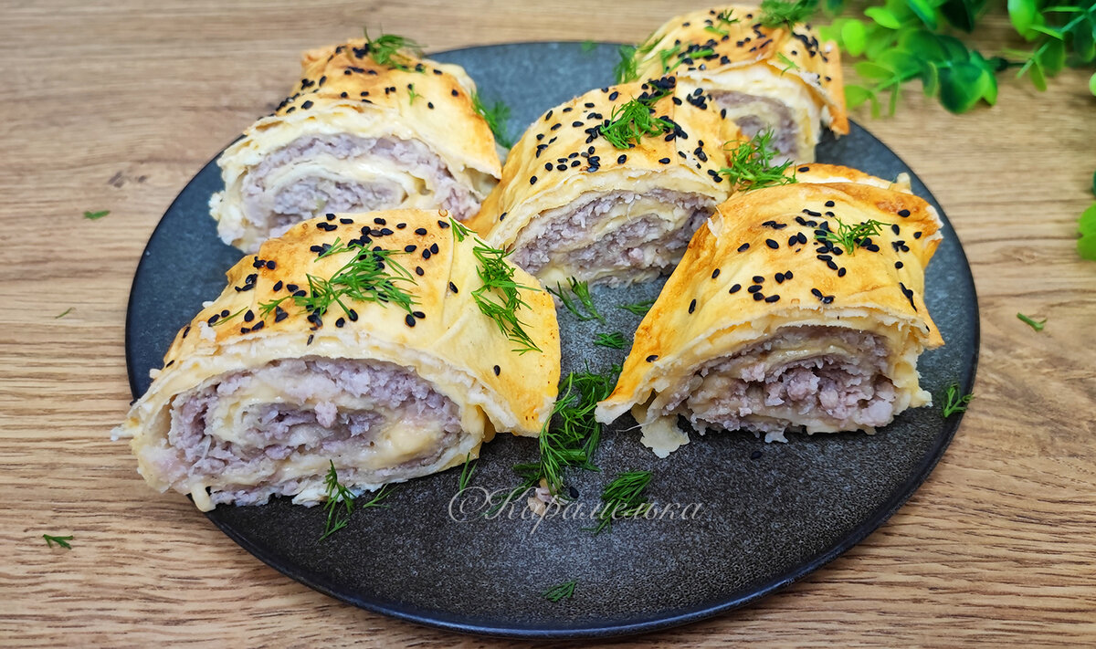 Здравствуйте, мои дорогие! Бывает такое настроение, когда хочется чего-то вкусного, сытного, домашнего, но при этом совсем не хочется стоять у плиты часами. Особенно в будние дни, когда дел много, а семья уже заглядывает на кухню с немым вопросом: "Ну что у нас сегодня вкусненького?" В такие моменты меня всегда выручает один простой и проверенный рецепт — рулет из лаваша с фаршем и сыром. Он получается настолько удачным, что его с удовольствием едят и взрослые, и дети, а гости потом обязательно просят рецепт. И знаете, что в нём особенно приятно? Никакой жарки, минимум хлопот и самые обычные продукты, которые почти всегда есть под рукой. А результат — сочный, ароматный рулет с румяной корочкой, который выглядит так, будто вы готовились к приёму гостей полдня. Ингредиенты: Как приготовить: 1. Для начала займёмся начинкой. В фарш добавляем мелко нарезанный или натёртый лук, соль и любимые специи. Это может быть чёрный перец, паприка или смесь трав — ориентируйтесь на свой вкус. Всё тщат