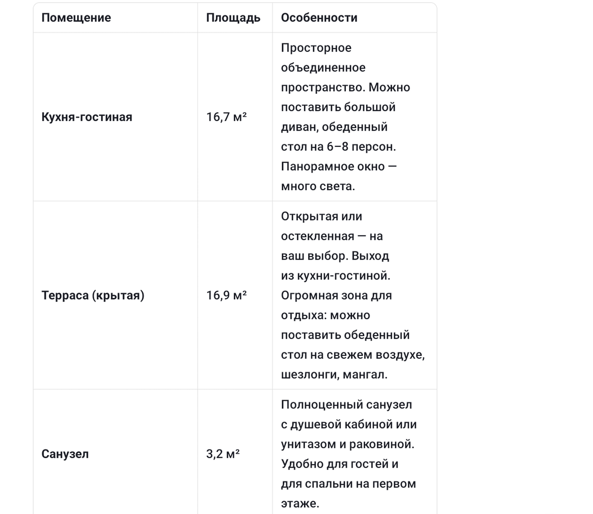 · Терраса второго этажа (16,9 м²) — выход из спальни 1 и спальни 2. Уникальное решение: две спальни имеют прямой выход на открытую террасу. Это добавляет дому уюта и приватности.