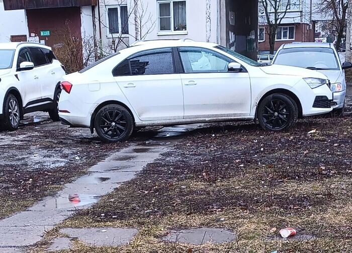 Много я видел криво-косо парующихся, но сегодняшний образец явно в числе лидеров. Только недавно растаял снег, дождь с утра моросит, везде лужи и грязь и какой-то олень не нашел ничего лучше чем припарковаться не просто на газоне, да ещё и поперек пешеходной дорожки полностью её перекрыв. Видимо, с расчетом, что выходя сам с места водителя встанет на плитку, а то, что все население дома теперь вынуждено месить грязь по газонам обходя его машину, думать, конечно, никто не планировал. У меня пара вопросов: - машина стояла все утро, стоит до сих пор... масса народу прошла мимо идя на работу и возвращаясь опять прогуляется по грязи, обходя эту машину... владелец настолько уверен, что ночью вместо дождя не начнется гряд, к примеру? - почему такое поведение наказуемо лишь небольшим штрафом (и то не везде), а не как, например, хулиганство (налицо же "грубое нарушение общественного порядка, выражающее явное неуважение к обществу")? Почему не становится причиной для повторного психологического