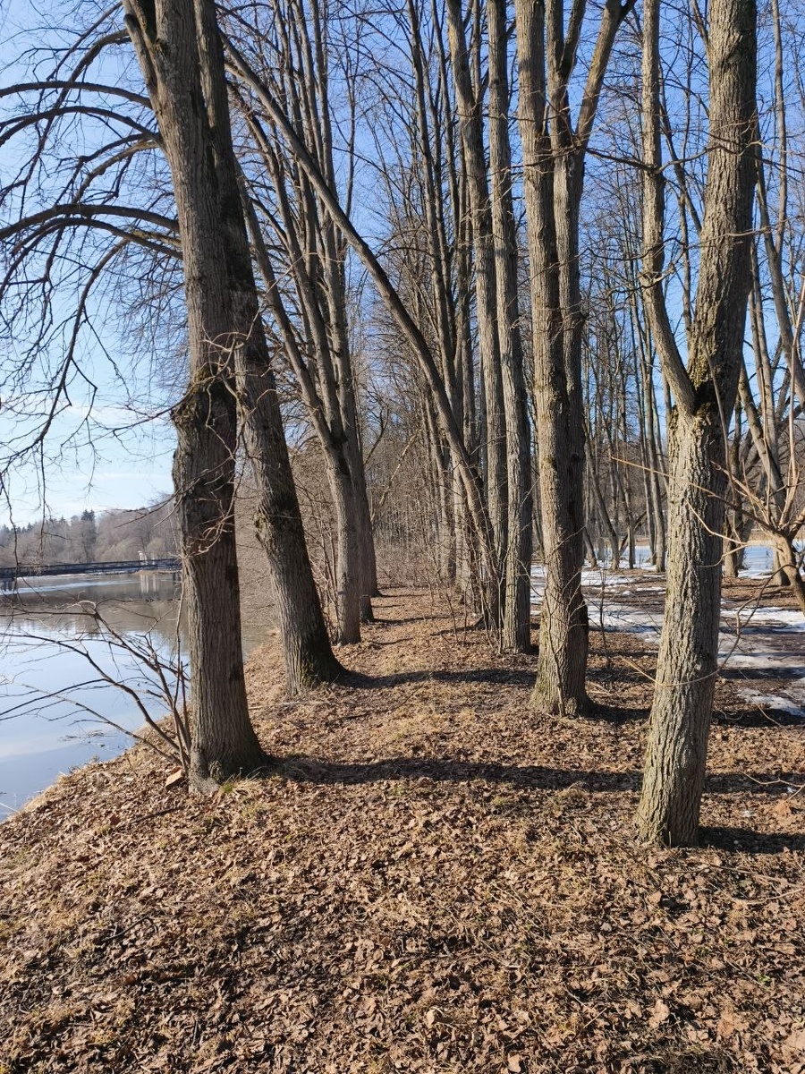 В центре острова стоит дерево на котором висят чьи-то завязочки. На остров ведут три моста, один из них вантовый. На нём нарисованы всякие символы. Мы встали у воды и там настроились на течении реки Десна. Солнце заиграло новыми красками и дуновение ветра закручивало спирали на водной глади. Везде сидят рыбаки и ловят рыбку, напротив наше жёлтое здание с колоннами центра. Раньше эта территория была целиком и имела исцеляющий природный эффект. #Ротонда #Десна #Остров
