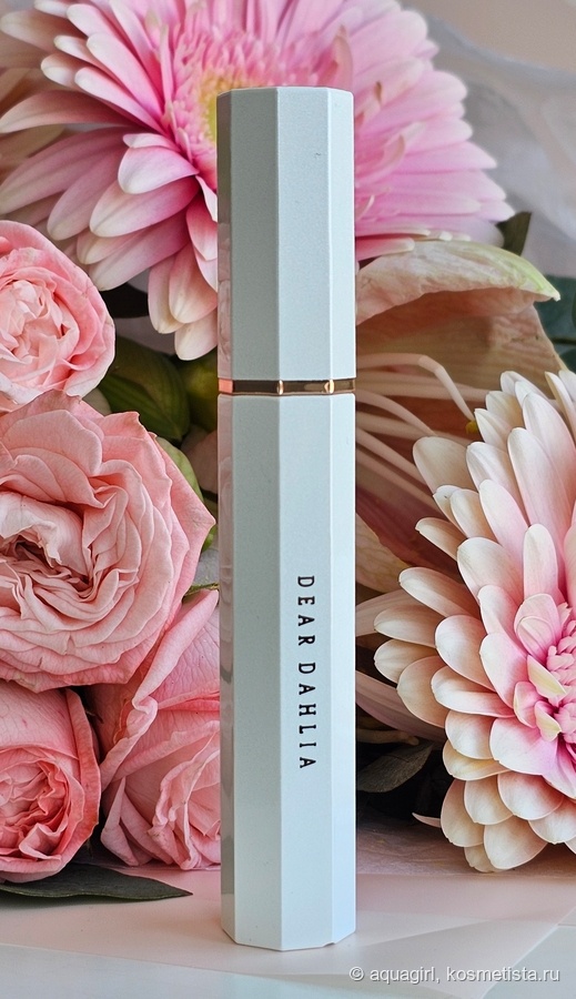 Добрый день, друзья! Бренд Dear Dahlia привлекает своим дизайном и разнообразием оттенков. Я перепробовала у них уже много позиций и сегодня расскажу про самую провальную — тушь Paradise Dream. Тушь водостойкая, хотя нигде в названии это не указано. Обещает нам производитель «роскошный объём» и «впечатляющую длину». За уход отвечают питательные масла ши, какао и оливы. Тушь также содержит экстракт георгина, обладающий смягчающими и защитными свойствами. Тушь представлена в двух оттенках — чёрном и коричневом. Срок годности после вскрытия 6 месяцев. Объем аж 10 мл, сделано в Корее. Крышка очень плотно закручивается до щелчка. Упаковка, конечно, милейшая. Восьмигранник красивого благородного оттенка слоновой кости. Отдушка отсутствует, запах типичный для этого продукта Щёточка упругая, слегка загнутая. Должна разделять и подкручивать ресницы. В целом, пользоваться такой щёточкой удобно, она не колет и не пачкает веко. Цвет обычный чёрный. Мои хилые ресницы, котором подходит далеко не каж