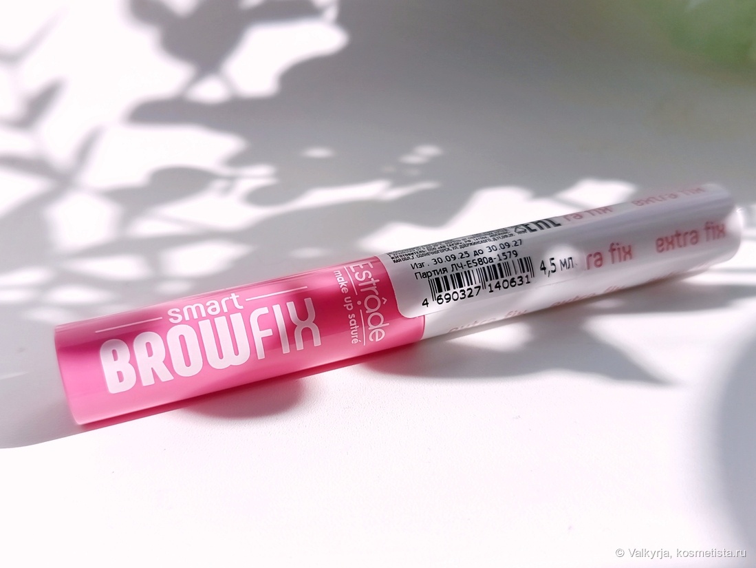 Приветствую! Для офорления бровей я перепробовала все — от когда-то нашумевшего мыла до цветных восковых тушей. Я не стремлюсь к цвету на бровях, уже давно практически их не подкрашиваю, но несмотря на беспроблемность волосков, я люблю когда всё точно в порядке. И остановилась на прозрачных гелях для бровей. Сегодня хочу рассказать про свой любимый гель с железобетонной стойкостью… Тот, который я повторяю уже 4 или 5 раз. Полное наименование: гель для бровей Estrade Smart BrowfixСтоимость: до 250 рублей, в последний раз взяла его за 170 руб. Объём: 4,5 млПроизводство: Россия Про упаковку рассказывать долго не буду. Скажу лишь, что она симпатичная и надежная… Уж сколько раз этот гель летал у меня с большой высоты, в том числе и на кафельный пол — не пересчитать, но ни разу корпус не треснул. Два информационных стикера служат защитой первого вскрытия. Я на нём только на сроки годности внимание обращаю. Ограничитель справляется со своей задачей сносно. Первые разы, конечно, набирается сли