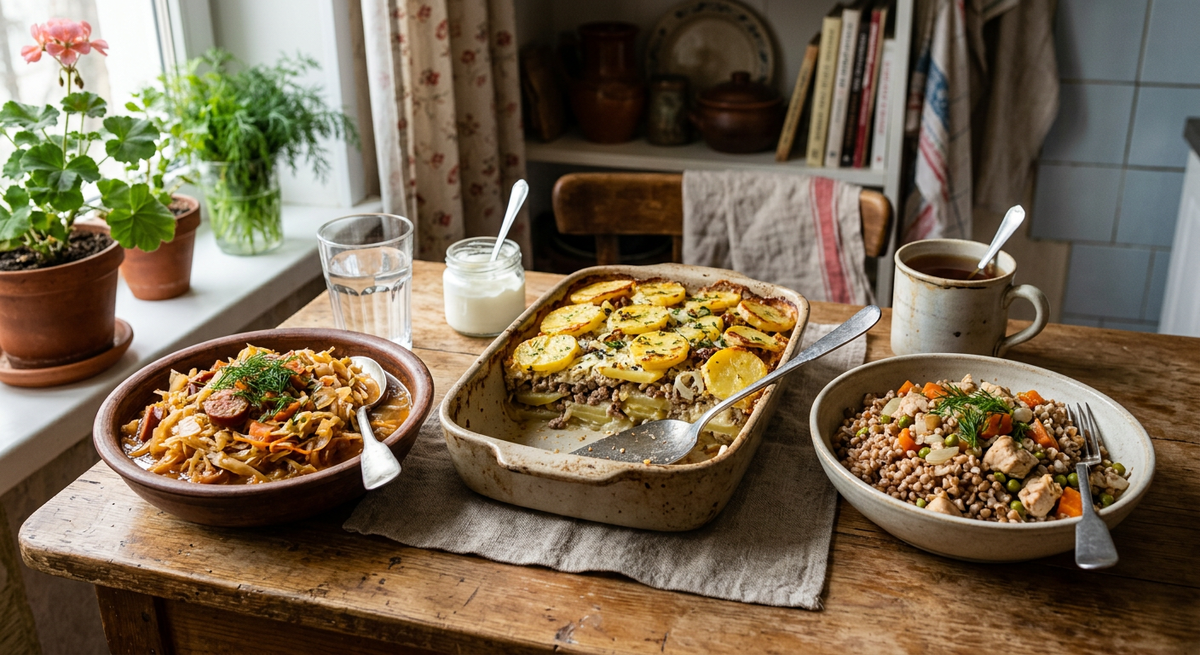 В субботу мне обычно не хочется стоять у плиты полдня. Но и мысль о том, что в воскресенье снова надо что-то срочно придумывать, тоже не радует. Поэтому мне больше нравится другой вариант: приготовить что-то один раз, без подвигов, и потом просто спокойно доставать из холодильника. Не “заготовки на неделю”. Нет. Это, по-моему, уже отдельный жанр. А вот еда на день-два — как раз нормально. Вот три блюда, которые в этом смысле реально удобны. 1. Тушёная капуста с сосисками или курицей