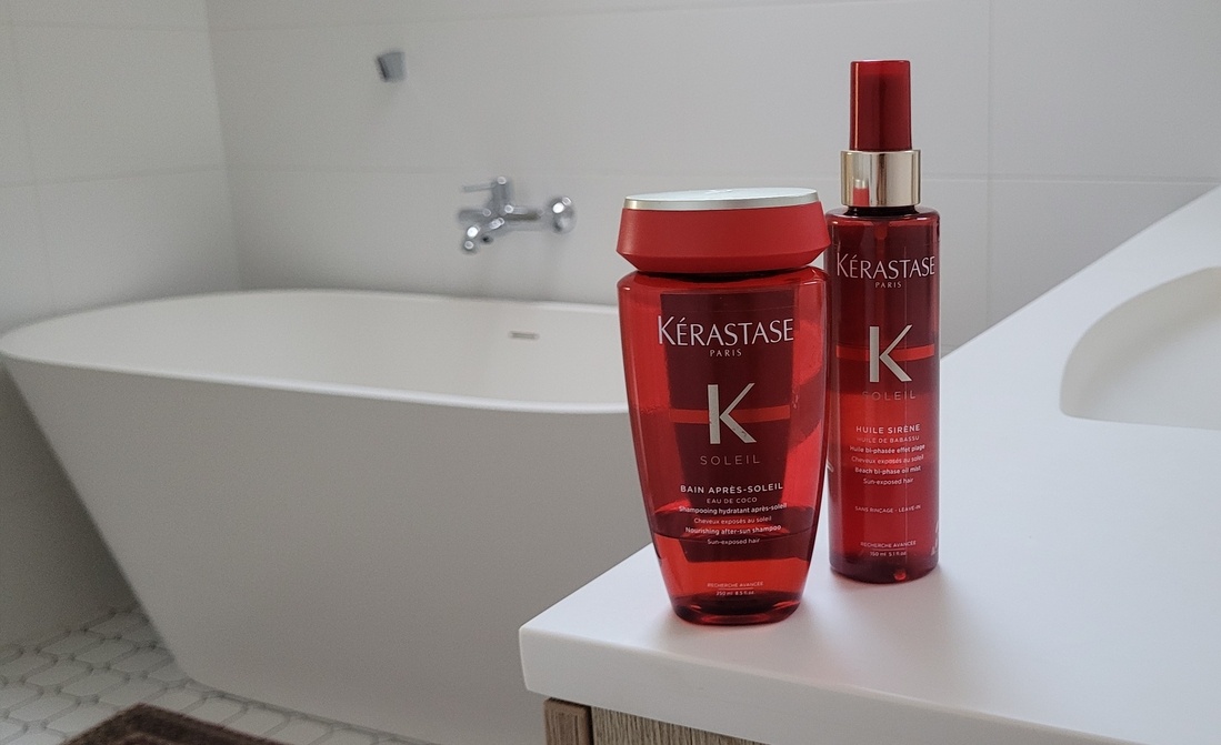 В преддверии лета и рамках флешмоба, посвящённого EU-beauty, предлагаю посмотреть на два средства из «солнечной» линейки Kerastase: шампунь Bain Après-Soleil и бифазное масло для защиты от солнца и пляжной укладки Huile Sirène.