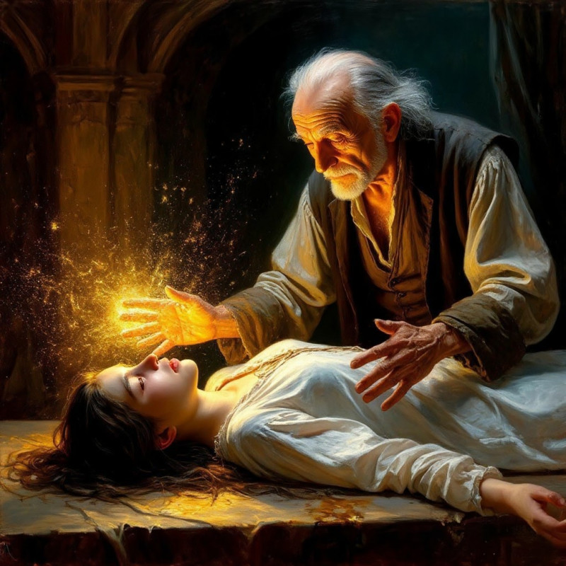 Маг-целитель возобновил движения ладонями над телом смертельно раненой эштвеллки. При этом выражение лица волшебника изменилось, куда-то пропала вся желчность, это лицо сделалось сосредоточенным, серьёзным, и, что несказанно удивило Мельхара, добрым. Никто из более или менее знающих графа Луциана Дер Корнагона, не смог бы назвать его приветливым человеком, способным на проявления нежности, но сейчас маска закоренелого сварливого циника сползла с лица королевского мага-целителя, открыв совершенно другое лицо, которое среди его окружения доводилось увидеть лишь единицам.