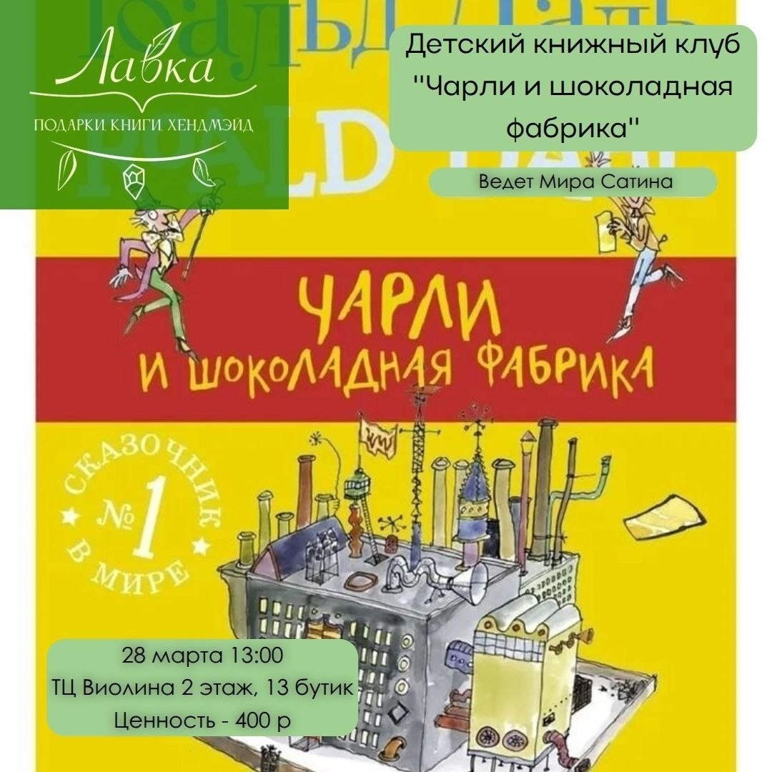 Сегодня встречаемся в детском книжном клубе с Мирой Сатиной для того, чтобы обсудить книгу великого сказочника Роальда Даля "Чарли и шоколадная фабрика". 🕐28 марта, 13:00 🪙400 рублей Также сегодня мастер Нина Попова, научит создавать крутые обвесы. 🕐28 марта, 15:00 🪙900 рублей В воскресенье начнется цикл встреч с художницей Светланой Шваловой "Необычная выставка". На них художник погрузит в мир своих картин "Многоточие", часть из которых украшают Лавку. 🕐29 марта, 13:00 🪙400 рублей 🔑записаться можно у @osamuilova или по телефону 89144983290 Предложить публикацию:@zabkulisye_bot Забкулисье в MAX