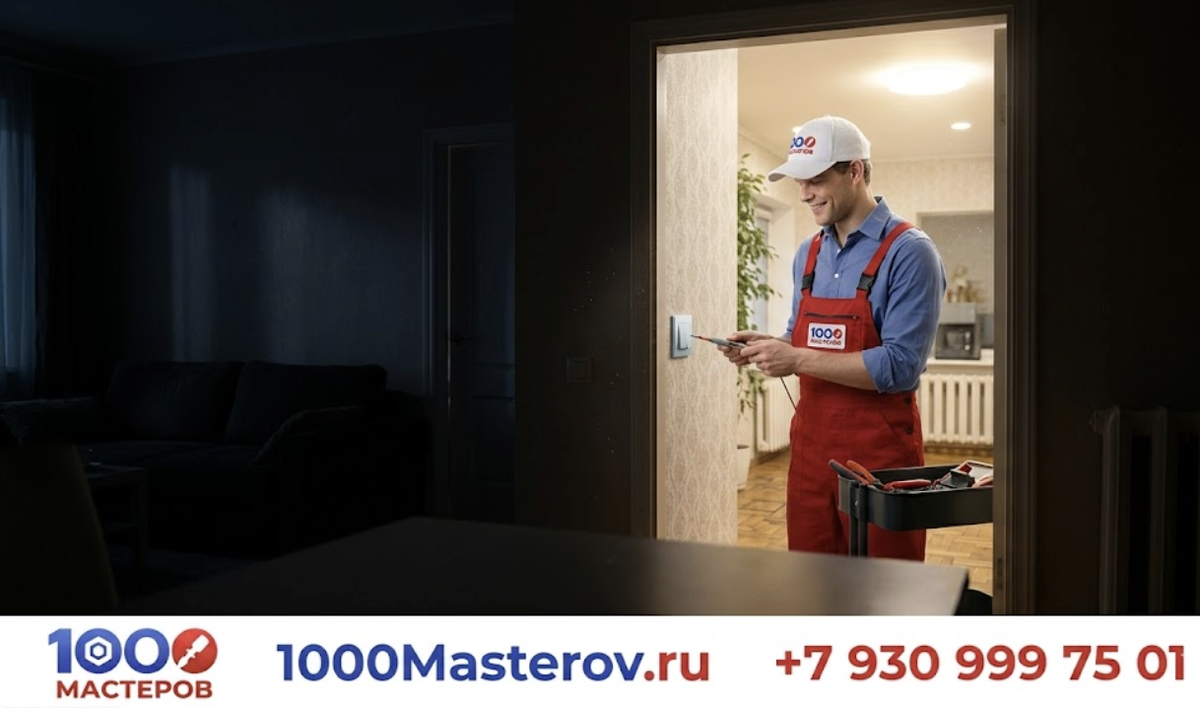 «1000 мастеров» — это сервис подбора частных мастеров, а не классическая ремонтная фирма с офисной наценкой. Когда у клиента проблема с электрикой, задача сервиса — быстро подобрать подходящего исполнителя под конкретную неисправность и район, а не просто дать любой номер и оставить человека разбираться самому. Для клиента это удобнее: цена согласовывается напрямую с мастером, а сам сервис остается на связи.