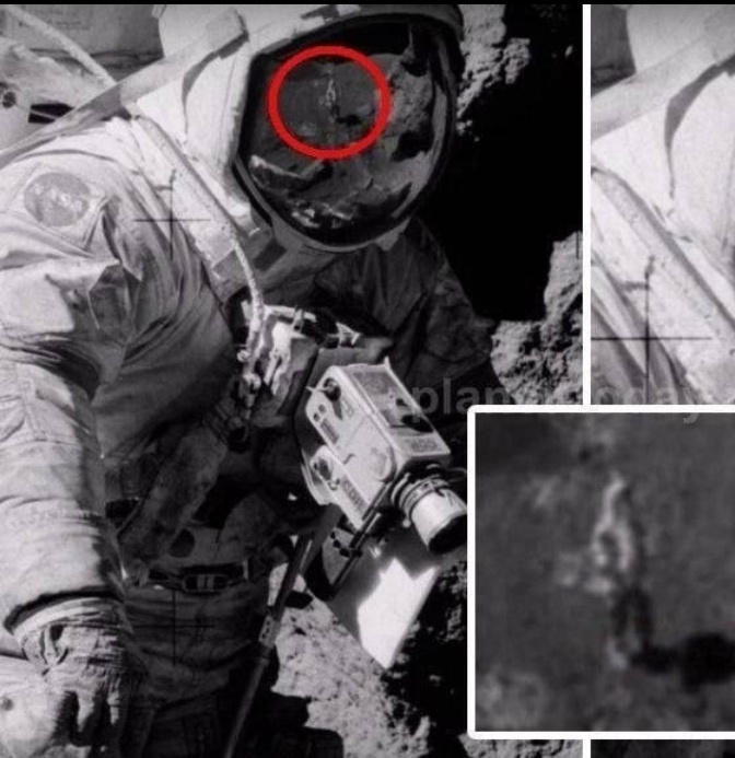 Недавно я наткнулся на один кадр с программы «Аполлон», который заставил меня серьезно задуматься. В отражении визора астронавта видна человеческая фигура и она выглядит совершенно не так, как должна.